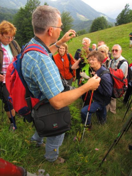 Opozoril nas je na sadne osamelce, ki jih je zaukazala posaditi Marija Terezija. Na strmi poti skozi gozd nam je pojasnil sožitje dreves, npr: bukve in smreke, ter kazal njihove poganjke. Ko smo prišli na plano, so se spet pričele množice cvetja, od katerega nekaterih vrst še nisem videla, tako npr. pisanega gadnjaka ali bele ripeče zlatice. Opozoril nas je, da so mnoge od njih avtohtone, da rastejo le tu oz. le v Sloveniji. Če bi se bolj zavedali, da Slovenija premore kar 3500 rastlinskih vrst, bi lahko bili tudi s tega stališča bolj samozavestni in bi morali najti način, kako tujcem predstaviti pogled na vse te lepote.