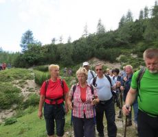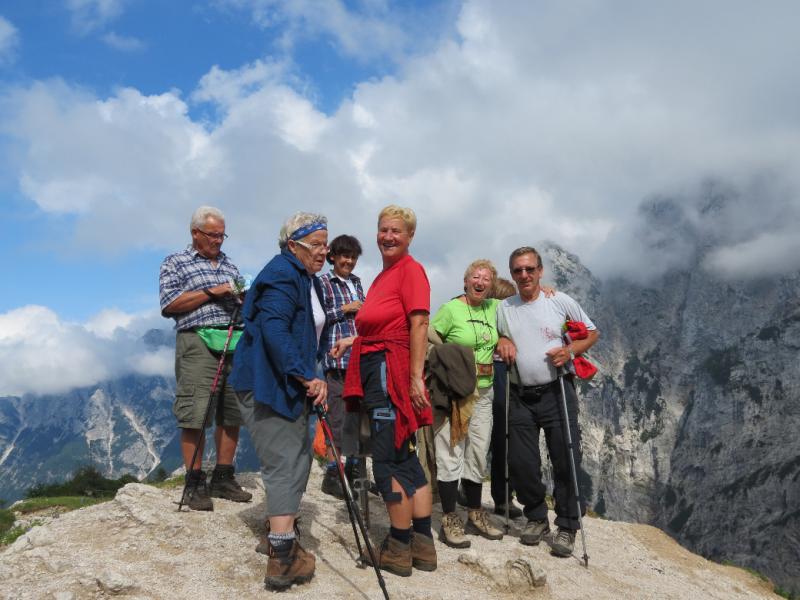 Z Mengor je sledil le še spust v Volče, kjer nas je čakal avtobus in nas preko Trente zapeljal na Vršič. Naredili smo kratek postanek v našem Poštarskem domu za kosilo, se povzpeli na vrh Vršiča (predvsem tisti, ki pridno nabiramo zbirko žigov v Dnevniku 60 vrhov za 60 let našega društva), se po stari cesti spustili do Erjavčeve koče in se preko Kranjske Gore odpeljali proti Ljubljani.