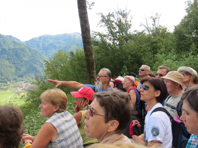 Prvi postanek smo naredili v Tolminu, kjer se nam je pridružil domačin Joško Kodermac, ki nam je v nadaljevanju dneva odstiral še mnoge neznane podrobnosti iz zgodovine vojnih dogodkov v teh krajih.