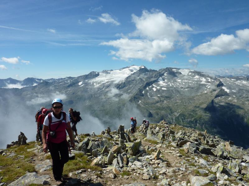 Vzpon na enega od vrhov prijateljstva, Hafner (3076 m) smo načrtovali v nedeljo 5. avgusta, vendar smo ga zaradi slabe vremenske napovedi prestavili za en teden. Odločitev je bila pametna, saj smo imeli na 12-urni turi ves čas stabilno vreme.