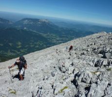 Za večerjo smo izbrali okusno zelenjavno-mesno Staničevo enolončnico in za posladek cesarski praženec, vse skupaj pa zalili z Berchtesgadenskim točenim pivom. Tudi to je značilnost nemških planinskih koč - ne nudijo nobenih pijač v steklenicah in plastenkah. Čevlje smo pospravili v garderobo na ogrevane sušilce in prebili noč vsak po svoje - nekateri med smrčanjem, zato pa so bili drugi bolj rahlega spanca. Po zajtrku smo sestopili do prijazne koče na planini Wimbachgrieshütte (1327 m) in po krajšem počitku nadaljevali vse do parkirišča, kjer smo si ohladili noge v potoku Wimbach in se končno preoblekli in preobuli. Pred vrnitvijo proti domu smo obiskali še znamenito jezero Königssee in se za krajši čas predali turističnemu vrvežu. Bavarske Alpe ponujajo še veliko privlačnih vrhov zato ni rečeno, da smo bili tukaj zadnjič.