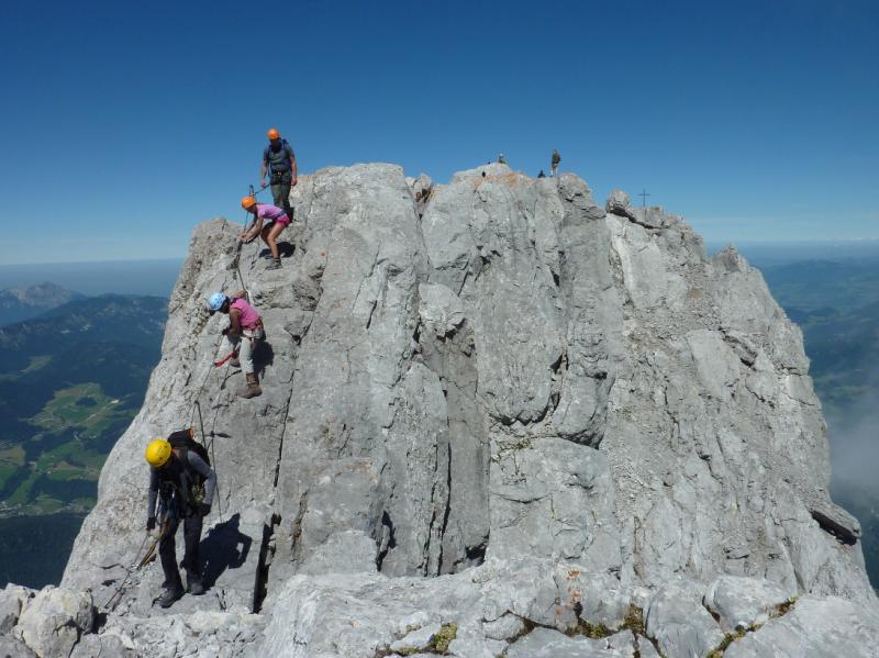 Legenda govori, da je v davnih časih živel okruten kralj Watzmann, ki ni maral ne ljudi ne živali. Nič boljši niso bili njegova žena in sedem otrok. Ko je bilo vseh njihovih hudobij preveč, so za kazen za večno okamneli, kar je dalo današnjo podobo in ime obsežnemu pogorju nad jezerom Königssee. Negativni vpliv hudobne družine očitno še vedno kroji razmere na gori, saj nam je lanskega julija močan dež preprečil načrtovani vzpon na njo. Program izleta smo zato ponovili letos in glej - v enakem obdobju julija spet niso bile dobre razmere, zato smo vzpon prestavili na soboto, 18. avgusta 2012. Tokrat je bilo čisto drugače. Na vse zgodaj smo se odpeljali iz Ljubljane, skozi predor Karavanke do Salzburga, pred njim zavili proti Berchtesgadnu do vasi Wimbacbrücke (624 m), kjer smo začeli vzpon po dokaj strmi gozdni cesti in nato stezi do velikega planinskega doma Watzmannhaus (1930 m) na skalnem pomolu, kamor smo prispeli v treh urah. Po krajšem počitku smo nadaljevali vzpon proti prvemu vrhu Hocheck (2651 m), ki je trajal naslednji dve uri. Tu je avgusta 1800 stal Valentin Stanič, ki ga je motilo, da ne vidi na Veliki Klek (Grossglockner), na katerem je nekaj dni pred tem stal s prvopristopniki. Zato se je odločil povzpeti po zelo zahtevnem grebenu še na srednji vrh Mittelspitze (2713 m) in ga tudi izmeril z merilnimi napravami, ki jih je imel s seboj. Tako je postal prvopristopnik na najvišji vrh Watzmanna, o čemer priča dvojezična bronasta plošča na pročelju doma. 212 let kasneje je tudi naša skupina sedmih planink in planincev srečno priplezala na Staničev Srednji vrh, še posebej pogumna je bila enajstletna Klara. Za ta del vzpona smo potrebovali 45 minut in prav toliko za povratek na Hocheck. Sledili sta še dve uri previdnega sestopa po razgibanem skalovju nazaj do planinskega doma Watzmannhaus, kjer smo si končno lahko privoščili počitek po deveturni naporni turi, na kateri smo pridelali 2013 metrov višinske razlike, kar je več kot pri vzponu na naš Triglav.