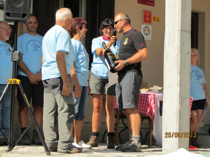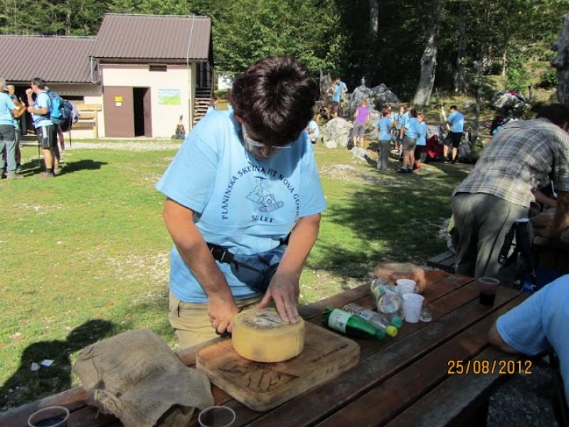Za planinsko skupino iz Nove Gorice je bil 25. 8. 2012 pomemben dan, smo na planini Razor počastili 50 let svojega delovanja. Prvi del slavja smo imeli že Šentviški planoti na srečanju planincev, tokrat pa smo se zbrali kot ena velika družina, ki pride praznovat v rojstni dom. Velikokrat je bilo že povedano, da je prav tu v tej koči 8. 9.1962 skupina mladcev sklenila, da na pobudo in prigovaerjanje Jožeta Dobnik takratnmega predsednika PD PTT Ljubljana ustanovi svojo skupino PS PTT Nova Gorica. Naslednji dan pa so ta sklep šli potrdit s prvim skupnim izletom na Globoko. Tako kot vedno ob okroglih obletnicah se je tudi letos že v četrtek odpravila na Triglav skupina desetih naših planincev, ki je prinesla pozdrave z vrha na prireditev. Tokrat jih je pot vodila z Rudnega polja na Kredarico in že prvi dan so stali na vrhu s soncem obsijanega očaka. Še preden pa so začeli hoditi, jih je na Pokljuki zaustavila huda nevihta in je poskrbela, da so si privoščili dober zajtrk pred napornim dnevom. Prespali so na Planiki, naslednji dan pa sokrenili proti Doliču in čez Hribarce na Prehodalce zer po dolini sedmerih jezer do koče pri sedmerih jezerih, ki jim je nudila gostoljubje drugo noč. Zadnji dan pa jih je čakala mukotrpna pot proti Komni in še zadnji vzpon na Globoko, kjer jih je pričakala skupina planincev, ki je prišla tistega dne iz doline. Kljub zahtevni in naporni poti so skupaj preživeli tri nepozabne sončne in tople dneve, polni lepih dogodivščin.