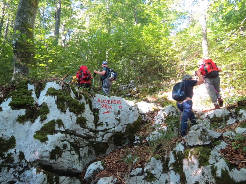 Na to območje smo se odpravili članice in člani PD Pošte in Telekoma Ljubljana v soboto, 8. septembra 2012. Odločili smo se prehoditi osrednji del KOČEVSKE PLANINSKE POTI in sicer od izhodišča v Slovenski vasi /472 m/. Najprej smo se po precej strmi poti, s prečkanjem štirih gozdnih cest, povzpeli na SLOVENSKI VRH /1040 m/, nadaljevali po gozdnih poteh in cestah ter traktorskih vlakah v smeri jugovzhoda do LEDENIKA /1072 m/, najvišjega vrha Stojne. Od tod smo se, čez pragozd Strmec in mimo Eleonorine jame, spustili do planinskega doma PD Kočevje, Koče pri JELENOVEM STUDENCU /850 m/. Po daljšem počitku, po skoraj 6 urah hoje, v prelepem okolju naravnega rezervata, v mirni dolinici pod Mestnim vrhom, si je večina udeležencev izleta privoščila enolončnico in razne pijače. 13 udeležencev pa je še zmoglo vzpon na izjemno razgledni MESTNI VRH /1034 m/, drugi najvišji vrh Stojne, s katerega smo videli ves Rog, Kočevsko kotlino z jezerom, pa tudi Julijske Alpe s Triglavom, Kamniške Alpe in drugo hribovje. Ta vrh je bil za vse najbolj zanimiv. Ne samo zaradi razglednih točk, ampak tudi zaradi ostankov italijanske vojske iz II. svetovne vojne, zmajarskega vzletišča, informacijske table in naravnih lepot.