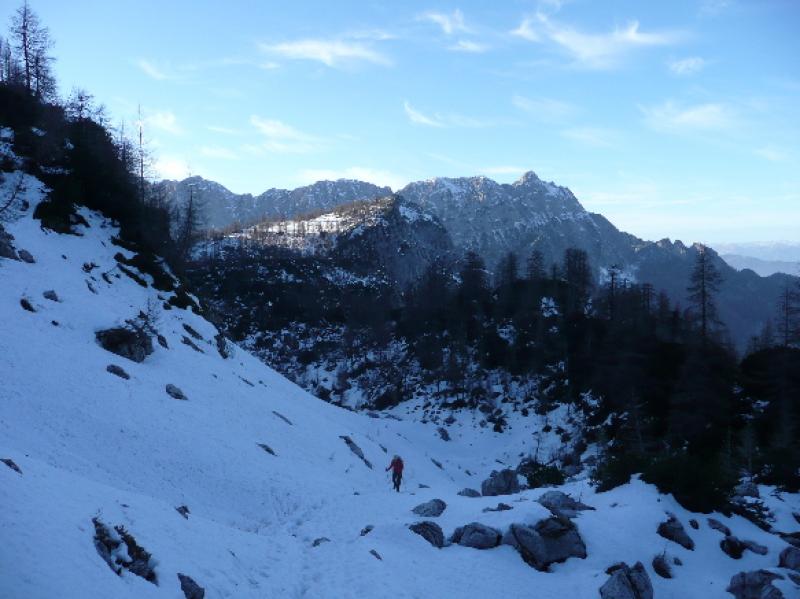 Cesta čez Vršič je prevozna, sicer pa je tam okoli prava zima. Na poti na Sleme je pomrznjen sneg in je hoja prav prijetna. Zato ni čudno, da je bilo na sončno nedeljo precej obiskovalcev, ki so se sončili na toplem soncu in uživali prelepe razglede na Jalovec, Špik, dolino skakalnic po Poncami, Dobrač in naprej v notranjost Avstrije. Srečali smo tudi 60 dobro opremljenih mladih Zagrebčanov na poti z Vršiča v Tamar.