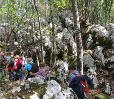 Na postajališču Matulji sta se nam pridružila vodnika Jadranka in Branko, dobra poznavalca Kastavske planinske poti. Z avtobusom smo se odpeljali v mesto Kastav, z lepim razgledom na Opatijo, Reko ter bližnja jadranska otoka Krk in Cres pa tudi na Gorski kotar, Lisino in Učko. Ogledali smo si zanimivo mesto, ki je sicer nekoliko skrito in ga ne opazimo med potjo na Jadran. Nato smo zapustili Kastav in krenili na pohod po Kastavski planinski poti, ki vodi skozi gozd, mimo prevrtanih sten, vrtač, jam z ostanki apnenic, raznih vojaških utrdb ob nekdanji Rapalski meji ter zapuščenih vasi in domačij.