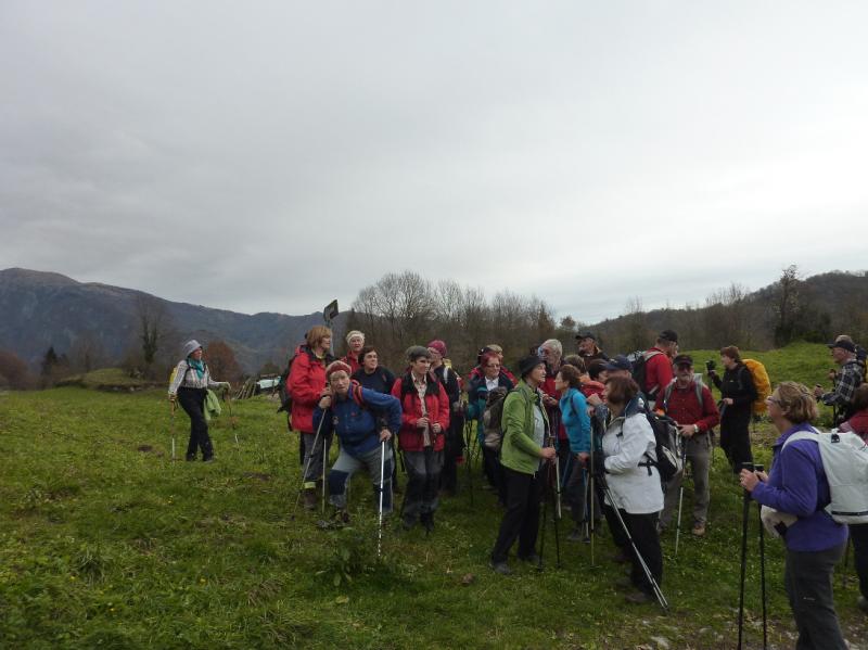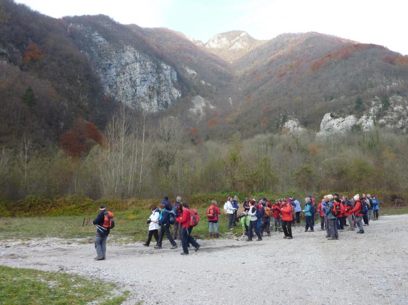Prehod čez most je razkril ostanke povodnji v obliki s prodom zasutih travnikov in izruvanih dreves. Iz nadmorske višine 205 m smo nadaljevali po desni strani struge reke Nadiže, nato se je začel bolj strm vzpon do naslednje vasi Arneč z nekaj hišami in zaraščajočimi terasami nekoč obdelovane zemlje. Od tod navzgor v Gorenjo vas in naprej na najvišjo točko hoje Sv. Štandrež (797 m), kamor smo prispeli točno opoldne, ravno ob zvonenju. Malo pred vrhom nas je pozdravila deževna ploha, ki je kmalu ponehala. Po daljšem počitku smo po nekoliko spolzki poti sestopili na drugo stran proti vasi Čarni varh, kjer živi še okoli 40 prebivalcev, otrok ni. Čakal nas je še sestop po dokaj dobri pešpoti nazaj v dolino Nadiže, kjer nas je pri vasi Štupca čakal avtobus. Cela tura je trajala dobri 5 ur, od tega 4 ure hoje. Izlet je vodila vodnica in varuhinja gorske narave Darinka iz naše Planinske skupine Nova Gorica.