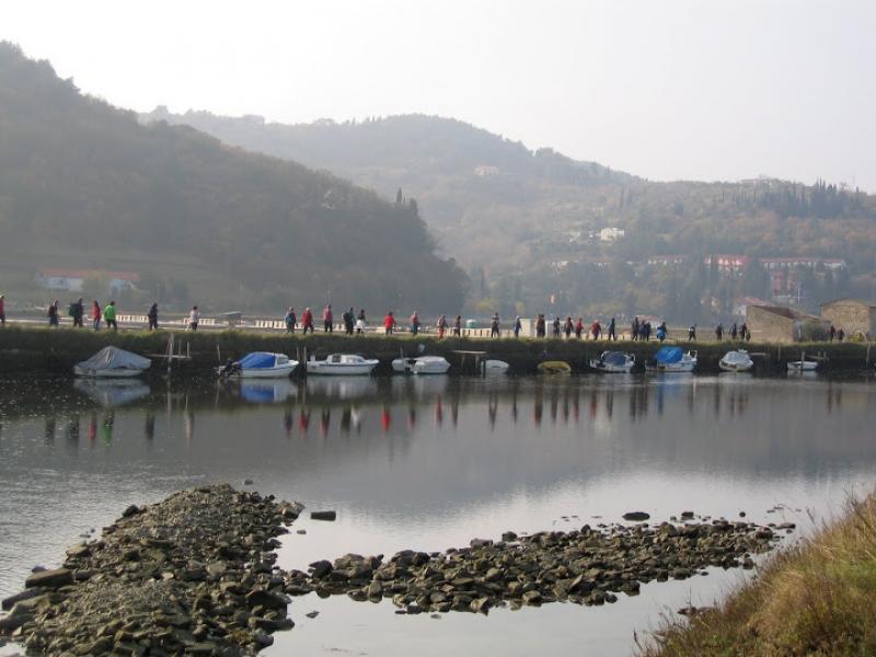 Pot nas je vodila nad najlepšim delom naše obale, še nedotaknjenim Mesečevim zalivom, ki predstavlja najvišjo flišno steno ob jadranski obali, do impozantnega kamnitega križa iz leta 1921, ki je bil večkrat prizorišče ekscentričnih umetnikov. Nato smo pohod nadaljevali mimo romarske cerkve sv.Marije vnebovzete v Strunjanu, ki je bila sezidana na mestu prejšnje kapele v letih 1906 - 26 preko Strunjanskih solin, ki so zlasti