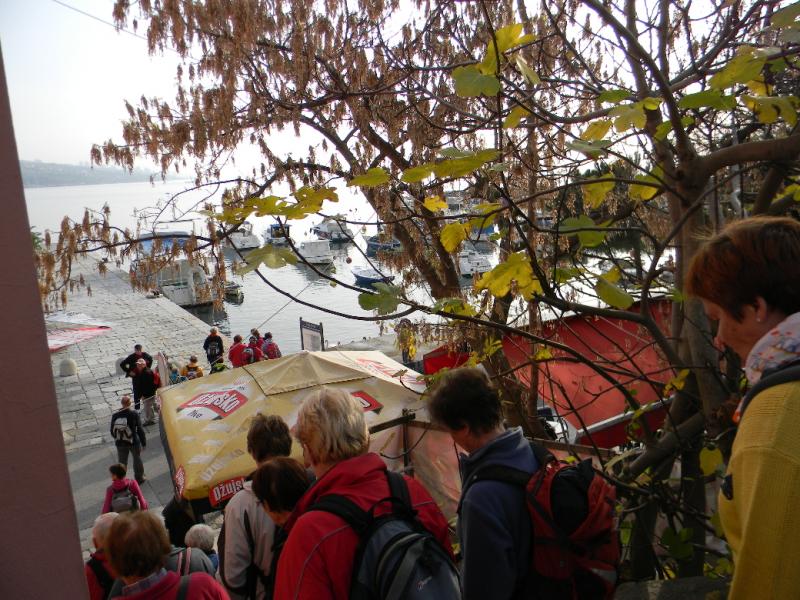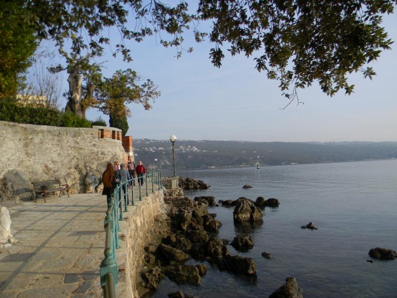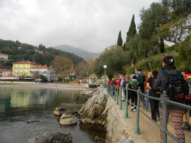 opatijske simbole in je zanesljivo ena najbolj znanih hrvaških poti /sprehajališč/, ki jo skrbno vzdržujejo. Čudovita obalna pot je poimenovana po Francu Jožefu I., habsburškem cesarju, ki je umrl 1916 leta, med I. svetovno vojno. Zgrajena je bila torej na prehodu iz 19. v 20. stoletje, tj. v dobi razcveta turizma v Opatiji in vse odtlej je to zelo priljubljeno sprehajališče, tako za občane Opatije, kot tudi za druge obiskovalce tega predela Kvarnerskega zaliva, severnega dela Jadrana. Sprehod po poti ni samo uživanje v svežem gorskem zraku in prekrasnem obalnem ambientu, ob številnih zalivčkih in potokih, ki se s pogorja Učke /Parka prirode/ izlivajo v morje, ampak je tudi oživljanje spomina na številne pomembne prednike in občudovanje njihove ustvarjalnosti. Tokratnega izleta, s katerim smo se planinci PD Pošte in Telekoma Ljubljana poslovili od letošnje poletno-jesenske sezone, spet na območju nam ljubega Kvarnerja, se je udeležilo 57 članic in članov društva. S posebnim avtobusom smo se odpeljali do obmorskega letovišča VOLOSKO, kjer smo sestopili na obalo in se mimo rojstne hiše velikega znanstvenika Andrije Moharovčića, odpravili prehoditi celotno 12 km dolgo obalno pot do LOVRANA. Hodili smo mimo bivših vil, sanatorijev, penzionov in hotelov, ogledali smo si bujno rastlinje v Parku Angiolina in Slatina. Vstopili smo v cerkev sv. Jakoba, ki je bila nekoč benediktinska opatija, prvič omenjena leta 1453, po kateri se imenuje kraj Opatija in v kateri so izjemne podobe našega slikarja Toneta Kralja in podarjena plastika Pieta, I. Meštroviča. Vso pot so nas spremljala spominska obeležja pomembnih ljudi iz davne preteklosti: znamenitih zdravnikov, pisateljev, pesnikov, navtičnih kartografov, biologov, glasbenikov idr. /Littrowa, barona Eugena Ransonneta-Villleza, Jana Kubelika, H. Sienkiewicza, F. Schillera, T. Billrotha, J. Glaxa idr./, pa številnih še živečih »zvezd«, navedenih v zvezdnih tleh opatijske obale /športnikov, pesnikov, znanstvenikov, dramskih igralcev idr./. Na vsej poti nas je spremljala še vedno bujna vegetacija: prekrasni primerki cipres, palm, hrastov, dišečega lovorja, cvetočega grmičevja, raznega cvetja. Vso pot smo se srečevali z razkošnimi vilami, prekrasnimi primerki secesijske arhitekture, simboli Opatije /dekle z galebom/. V sončnem dopoldnevu smo hodili mimo lepih plaž ob kristalno modrem morju, mimo urejenih teras in delujočih lokalov, v katerih nam je bila na voljo hrana /tudi sladice iz lovranskih maronov!/ in pijača. Pred povratkom proti Ljubljani smo se iz Lovrana povzpeli še na območje Parka prirode Učka, in sicer na SLAP, ki je v osrčju vzhodnega predela Učke na višini cca 400 m.n.v., na območju slikovitega naselja Lovranska Draga.