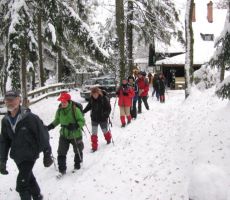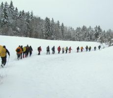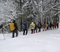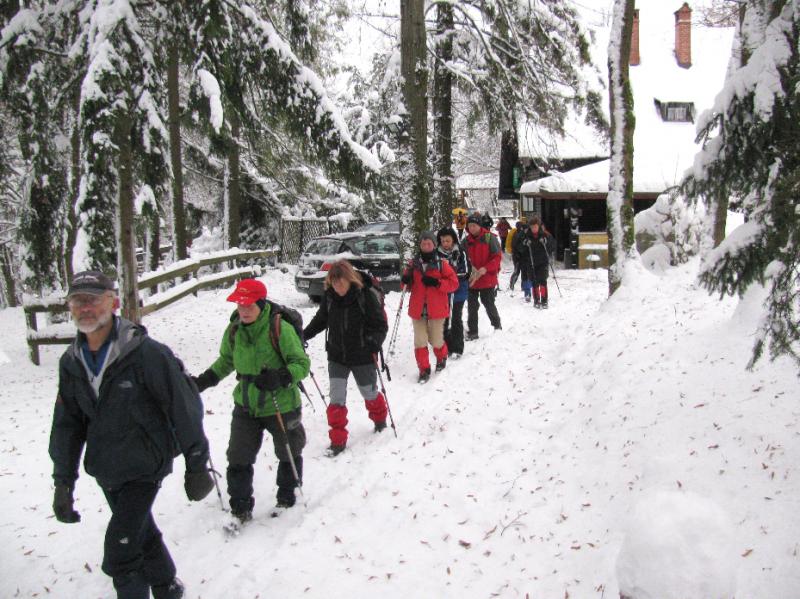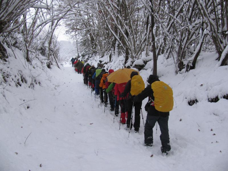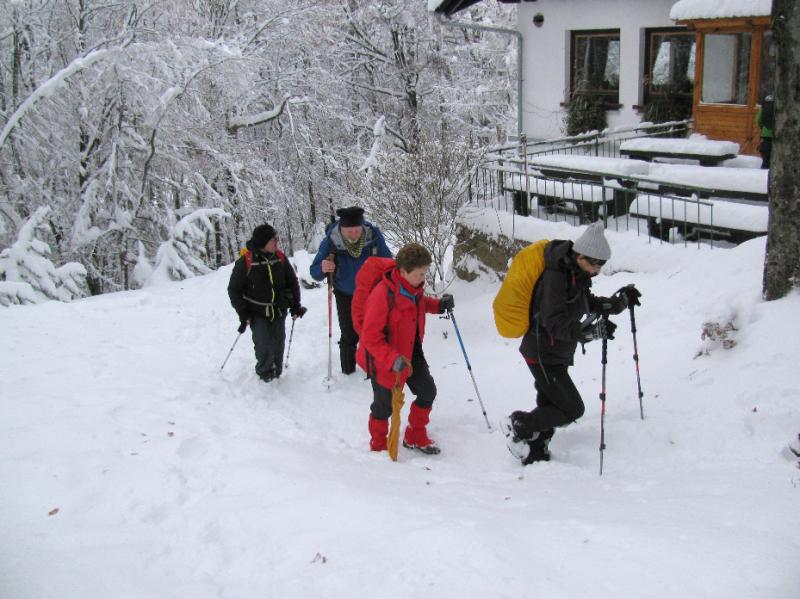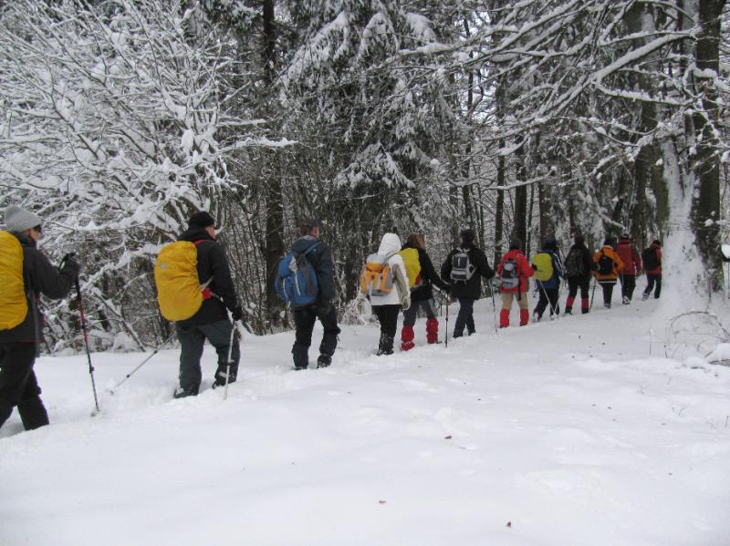 Utirali smo si pot skozi kakšnih 15 cm sveže zapadlega pršiča in za seboj puščali gaz za morebitne druge pohodnike. V tem dopoldnevu jih nismo srečali kaj dosti, na poti pa nas je presenetila skupina lovcev, ki se je veselila uplenjenega lisjačka. Za nas to ni bilo ravno razveseljivo srečanje. Hodili smo večinoma po gozdnih poteh, kjer so se s snegom obtežene veje ponekod sklanjale skoraj do tal, da so oblikovale lepe predore in še polepšale že tako lepo zimsko idilo.