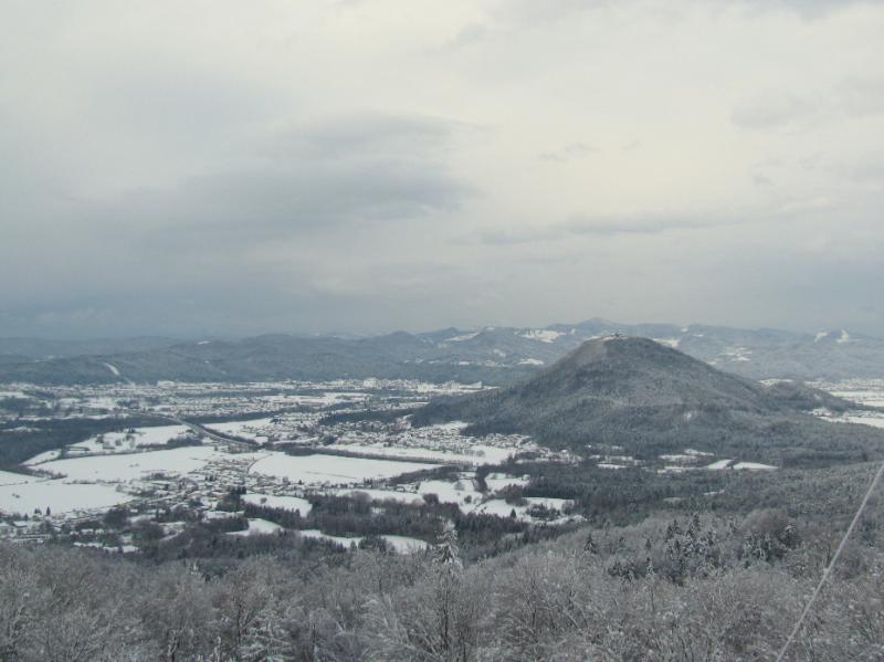 Kljub nočnemu sneženju in slabim vremenskim obetom za dopoldne, se nas je navsezgodaj zjutraj nabralo za pol avtobusa "pogumnih", ki smo jo mahnili na zadnji prednovoletni pohod. Načrtovana pot iz Stahovice preko Kisovca na Kranjski Rak bi bila v danih pogojih prezahtevna, zato sta nas vodnika Boris in Jože odpeljala iz Črnuč prek Rašice in Gobavice do Mengša. Sprva je še rahlo naletaval sneg, ki pa je kmalu ponehal. Na Rašici nas je celo razveselilo sonce, ki pa je le sramežljivo pokukalo skozi oblake in napravilo pokrajino bolj prijazno. Z razglednega stolpa se je tako preko Šmarne gore videlo do Porezna na Primorskem koncu, na Gorenjskem sta se pokazala Jošt in Šmarjetna gora, na severu pa so izpod oblakov kukale osvetljene Kamniške planine.
