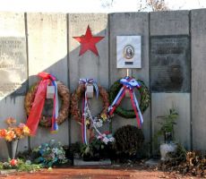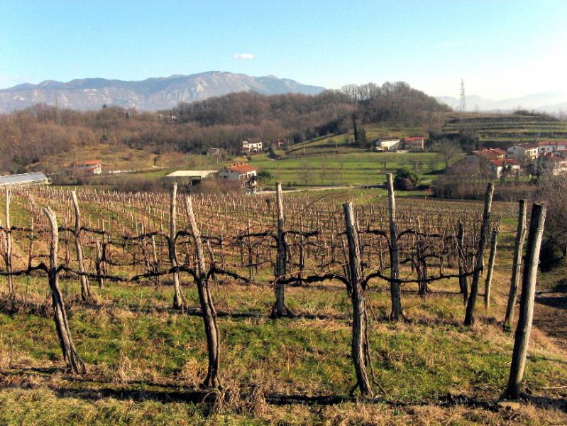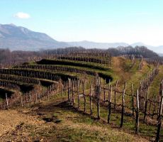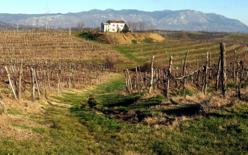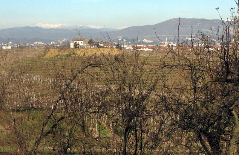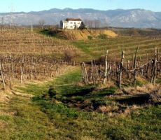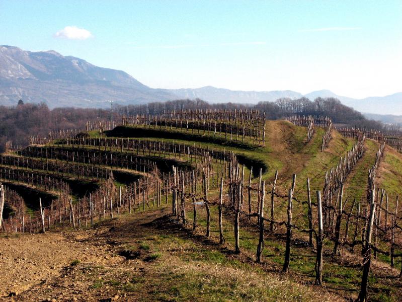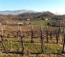 Od tu smo se spustili proti gričem zasajenimi z vinsko trto, pretežno merlotom in vseskozi čudovitimi pogledi proti vzpetinam in goram v ozadju: Trnovska planota s Čavnom in Nanosom, Trstelj, Cerje, Sabotin, Sveta Gora, Škabriel... Pot je speljana med gozdovi, po gričih, poraslih z žlahtno vinsko trto, ponekod je bila blatna, tudi čez potok je bilo treba, a vseskozi razgledna in s soncem obsijana. Med labirinti vinogradov prispemo do naslednje znamenitosti. Med vinogradi je skrito avstroogrsko pokopališče iz 1. svetovne vojne, ki je te kraje zelo zaznamovala. Nadaljujemo po potkah med grički z lepo urejenimi nasadi te žlahtne rastline in ker nas je pričel priganjat že čas... in tudi "želodčki", pot skrajšamo in gremo naravnost v Vrtojbo. Kot naselje z imenom Tojva je omenjeno v zapisih že v 13. stoletju. Po zasnovi je to tipična dolga obcestna vas, ob prometni povezavi Goriške z Goriškim Krasom. Kraj z bogato kulturno zgodovinsko preteklostjo, ki sta ga zaznamovali s svojimi grozodejstvi obe svetovni vojni in pa dogajanja po zadnji svetovni vojni, ko se je tu zarisala nesmiselna in kruta nova meja med vzhodom in zahodom. V spomin na ta dogajanja so uredili muzej „Stražarski stolp", ki s fotografijami priča o teh časih in je najmanjši muzej v Sloveniji. V gostišču Rutinca smo spoznali značilne jedi tega območja - okusno šelinko iz zelene, pa ostale dobrote, ki so nam zelo teknile. Seveda smo poskusili tudi, kakšna kapljica nastane iz tistih mogočnih vinskih trt, ob poti.