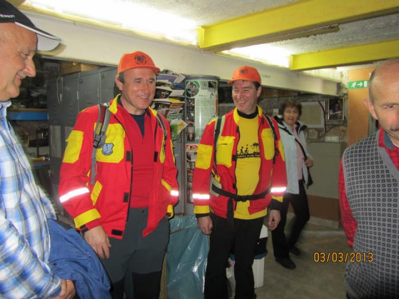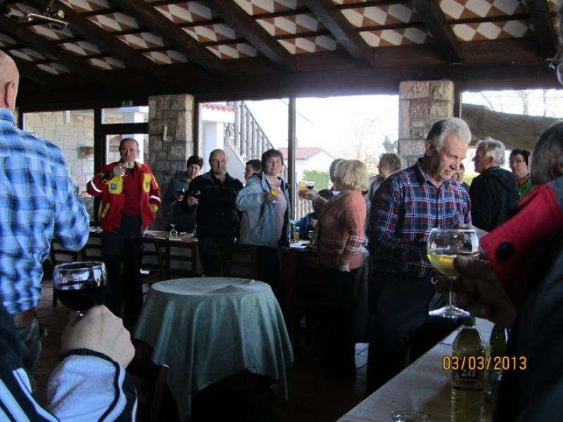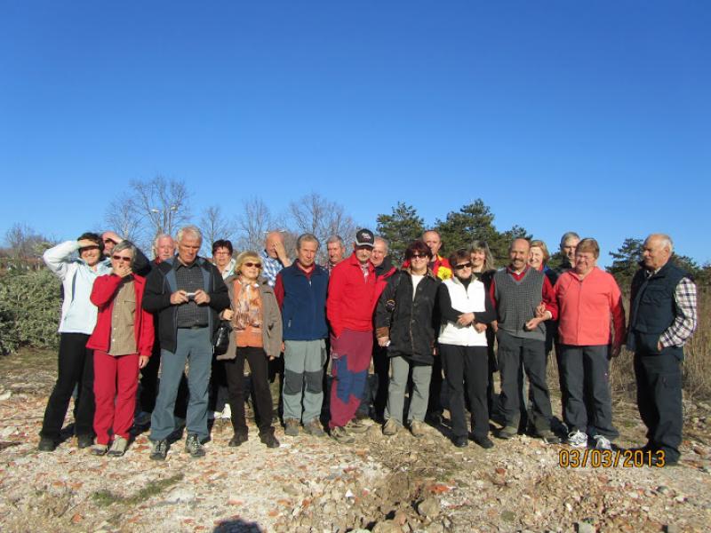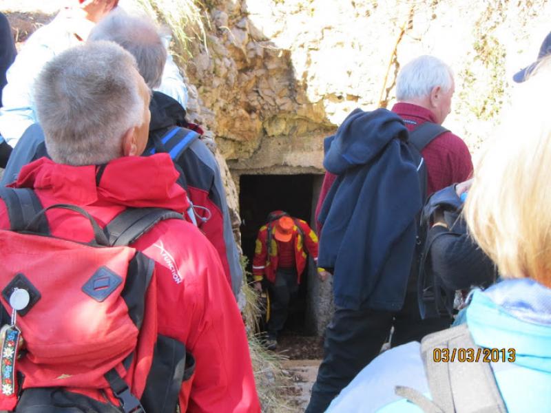 Lebana skupaj s Planinsko skupino iz Novega mesta ogledali dve jami. Izpred tako imenovane »stare šole«oz TIC-a v Temnici sta nas najprej popeljala navzdol proti Krompirjevi jami. Šli smo mimo pastirske hiške, ki je pastirjem služila kot zavetišče pred dežjem, Božo pa je obujal tudi spomine na neumnosti ki so jih »ušpičili« v njej. Spominjal se je tudi, da so bili tod okrog nekoč pašniki, sedaj pa je vse zaraščeno. Nato smo si ogledali kamniti nasip, bivšo železniško progo, ki je vodila iz Kostanjevice do Komna. Po njej so oskrbovali vojake v zaledju fronte. Lokomotiva na pogon s pomočjo elektromotorjev je zmogla potegniti 10 vagonov oz. 60 ton. Ker je šla samo proti naprej, so morali zgraditi tudi obračališče. Imeli pa so tudi skrivališče, nekakšen usek, kamor so jo skrili v primeru obstreljevanja. Gradili so jo vojaki, predvsem pa vojni ujetniki 1915. leta.
