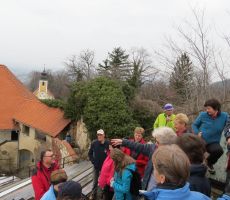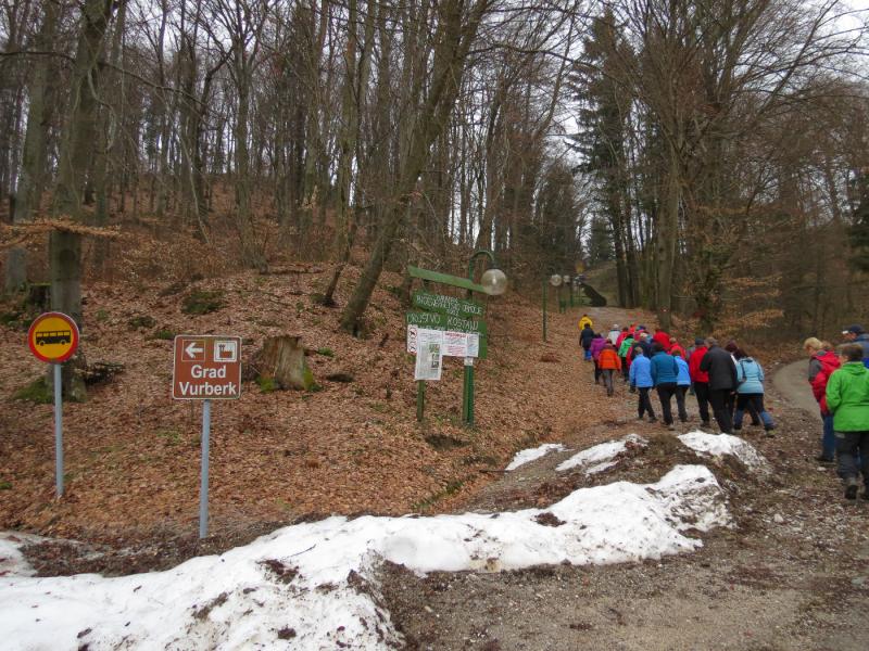 V Vurberku smo izstopili iz avtobusa, dan je bil kar hladen in mrzel veter je pihal, napotili smo se na Grad Vurberk, si pogledali prireditveni prostor in se razgledali z vrha gradu po ravnini pred nami. Gora, ki bi se ob jasnem vremenu videle na obrobju ravnine, žal zaradi oblačnega vremena nismo videli. Nam jih je pa s svojo pripovedjo pričarala ga.Vika. Mimo cerkve Sv. Marije, ki smo si jo ogledali in mimo zdravilnih točk smo se vrnili do glavne ceste in začel se je naš pohod na Grmado.