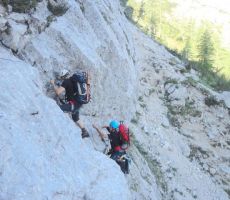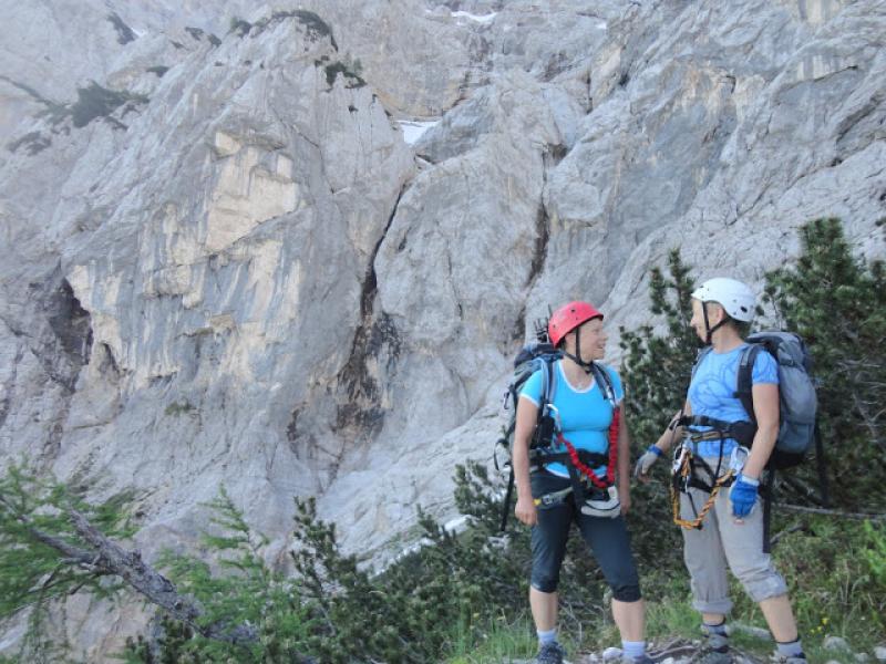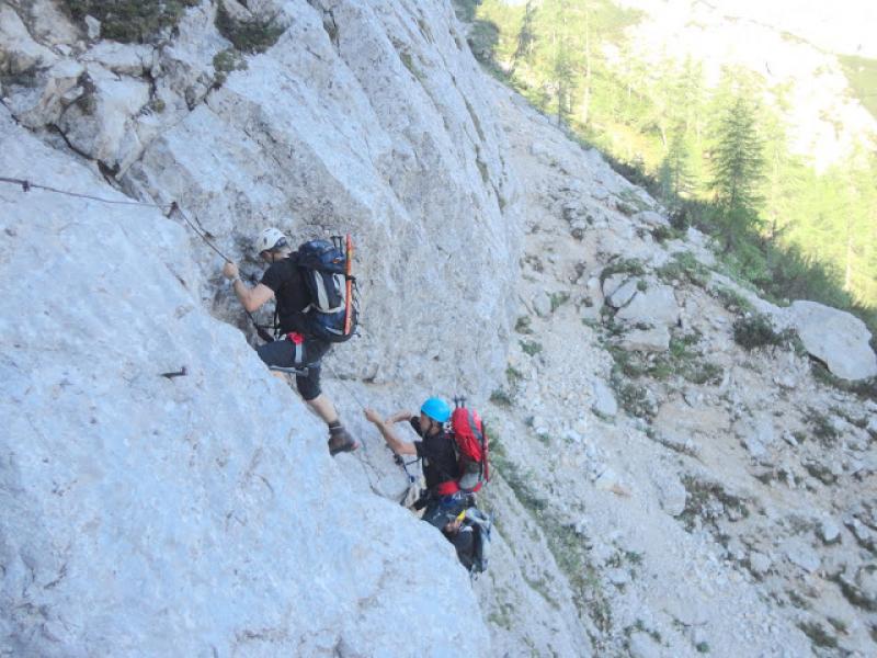 Naslednje jutro smo se podali na ogledno turo skozi prvo okno na Prisojnik. Kot je za naše društvo značilno, se nam je v zgodnjih urah pridružilo še nekaj naših bolj drznih članov.
