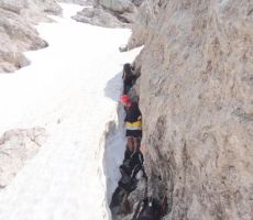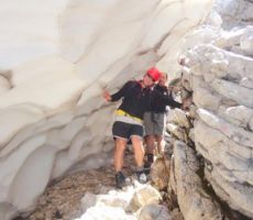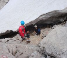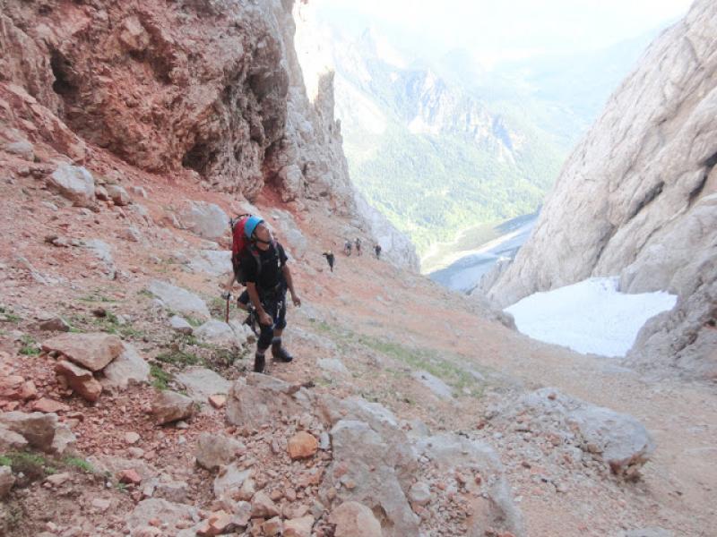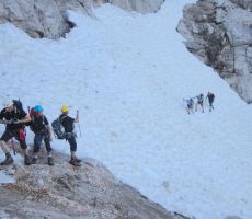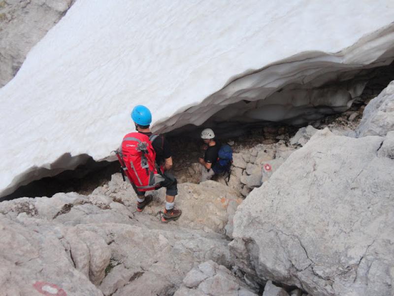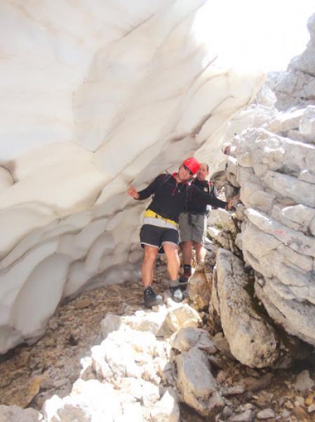 Pot smo uspešno pregledali s prečenjem zasneženih predelov ter po grebenski poti osvojili vrh. Tu smo spoznali, da ta dan ne bomo videli Zadnjega okna, zaradi preobilice zasneženih pobočji. Tako smo se vračali po Slovenski smeri. Tudi ta je bila velik del zasnežena in v takih razmerah zelo zahtevna. Konec pa nam je popestrilo še grmenje in bliskanje strel in prav pred kočo nas je osvežila še sodra.