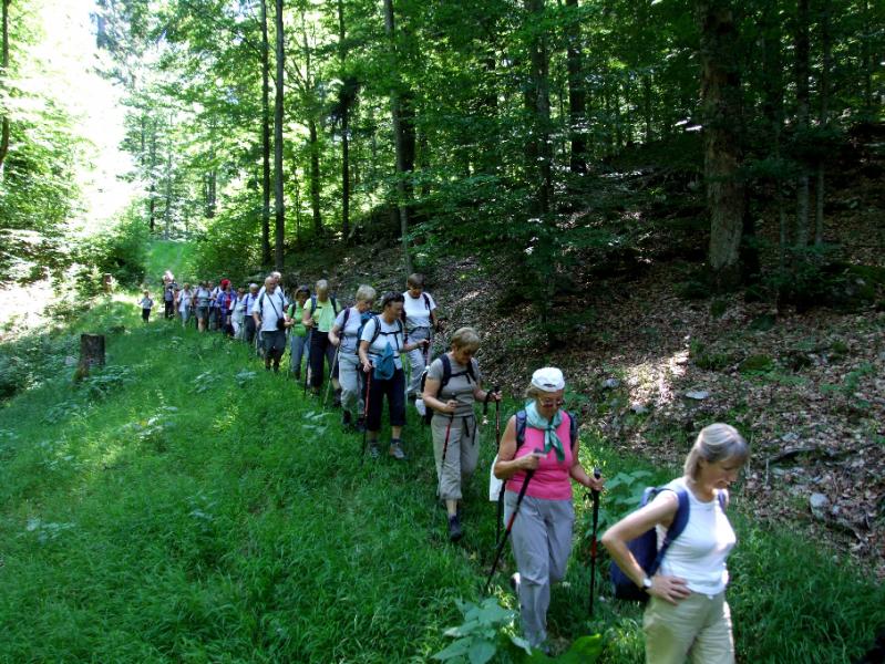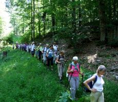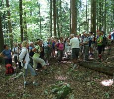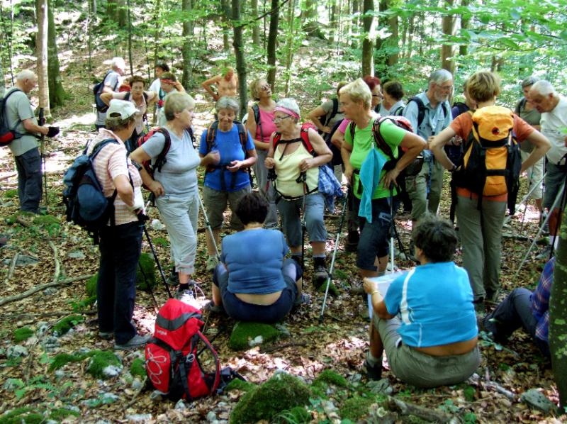 Hojo smo pričeli pri gozdnem rezervatu Prelesnikova koliševka, sledili markacijam v obliki zelene medvedove šape in obiskali mogočno jelko, ki je upravičeno dobila ime Kraljica Roga. Posebno pozornost smo namenili Rajhenavskemu pragozdu, ki je zaščiteno območje že od leta 1892. Naš vodič je znal pokazati marsikakšno zanimivost tega področja in ko smo prispeli do Roške žage, je sledil počitek. Zatem smo nadaljevali vzpon do vrha Roga (1.099 m), kjer smo z razglednega stolpa lahko opazovali kako obsežno je to gozdno področje. V miru in hladu mogočnih zelenih prostranstev smo se spočili od pregretega poletnega ozračja. Ob povratku smo se ustavili v Kočevju, kjer smo si privoščili okusno zelenjavno enolončnico.