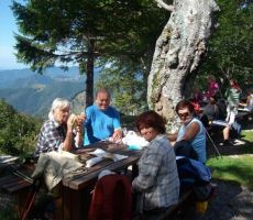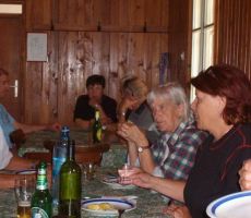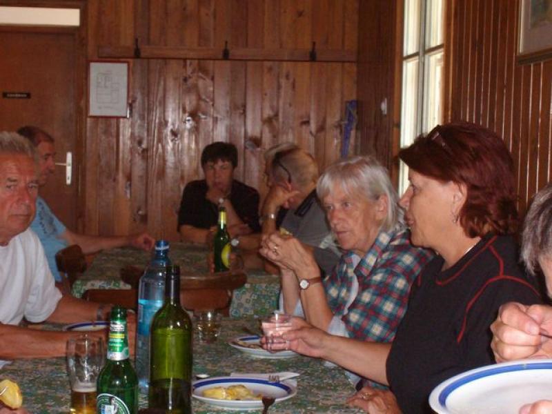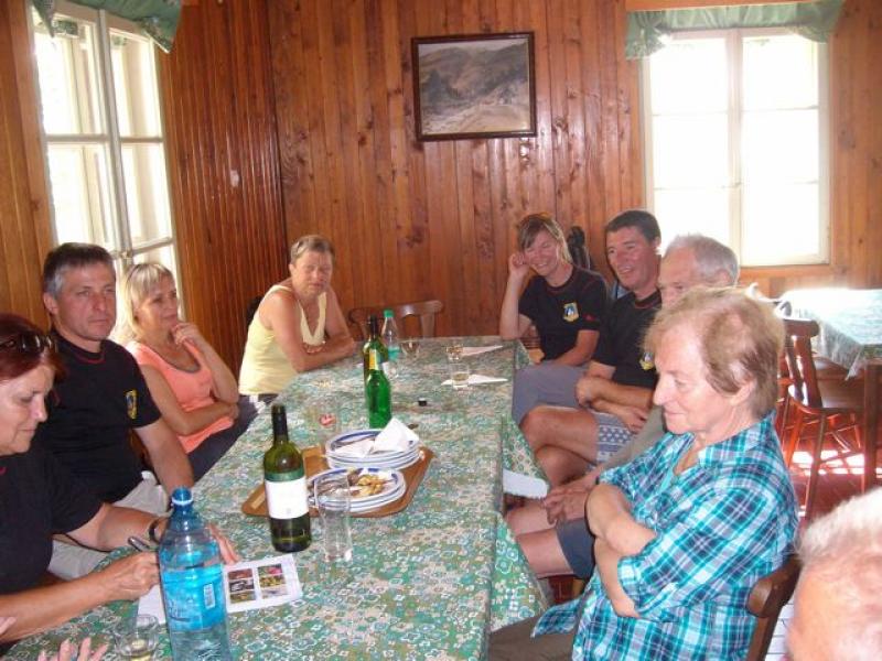 Posedli smo v stransko sobo, kjer nas je pozdravil predsednik, Ivan Trampuž. Spomnil nas je, da smo tokrat na planini že 51-tič, saj je bila naša planinska skupina ustanovljena leta 1962, ko jih je bilo prav na tem mestu le osem, čeprav je pred tem članarino plačalo 32 članov. Zakaj tako majhna udeležba? Ker je bila delovna sobota, so delovno mesto smeli zapustiti le nekateri, npr. Dobnik, Zgaga, Blažič, Volk itd. Od ustanovnih članov sta prisotna le še dva, od nekoliko kasneje pridruženih pa so ostali zvesti le še trije. Kljub temu pa skupina, ki