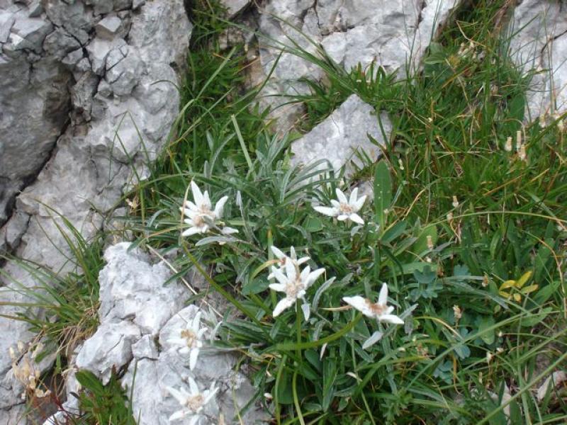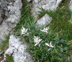 zdravilnih rastlin. Pegasti bandelj je bil v polnem razcvetu; do planik, ki rastejo nekoliko više, pa se tokrat ni povzpel nihče. S pašnikov na planini je pogled uhajal proti vasi Tolminske Ravne in še dalje proti breginjskemu