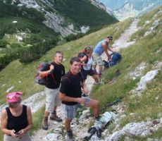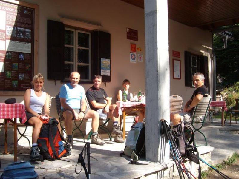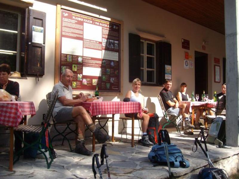 Pri planinski koči na planini Razor smo se takoj počutili kot doma. Koča, mize, klopi, vse je bilo na svojem mestu, le visokorasle bukve so dobile svoje obeležje. Ozirali smo se na okoliške vrhove, kot so Tolminski Migovec, Škrbina, preval Globoko ali Žabiški Kuk. Med njimi, ki so visoki okrog 1900 m nekoliko izstopa Vrh nad Škrbino s svojimi 2054 metri. Nato smo se razkropili po planini in ugibali imena zadnjega planinskega cvetja in