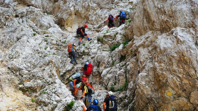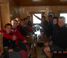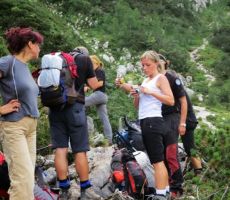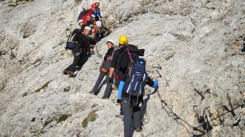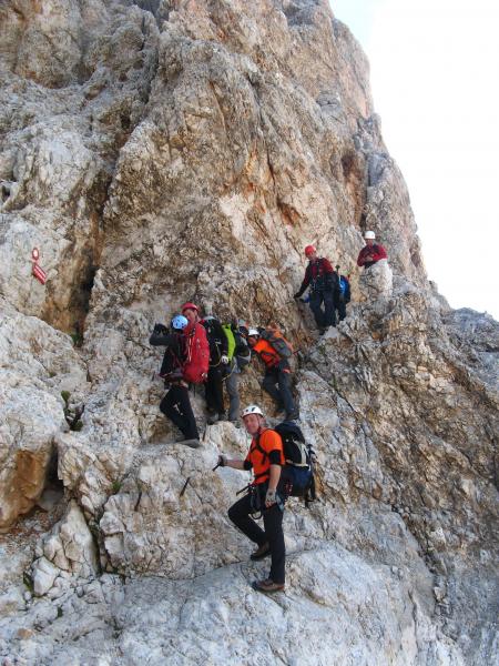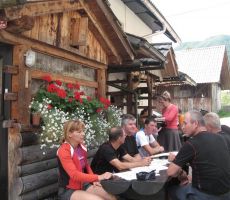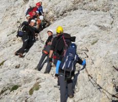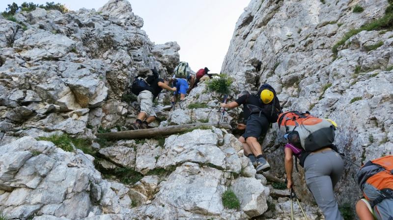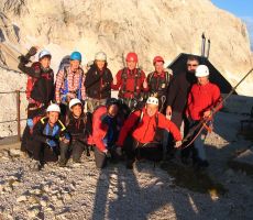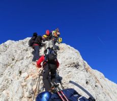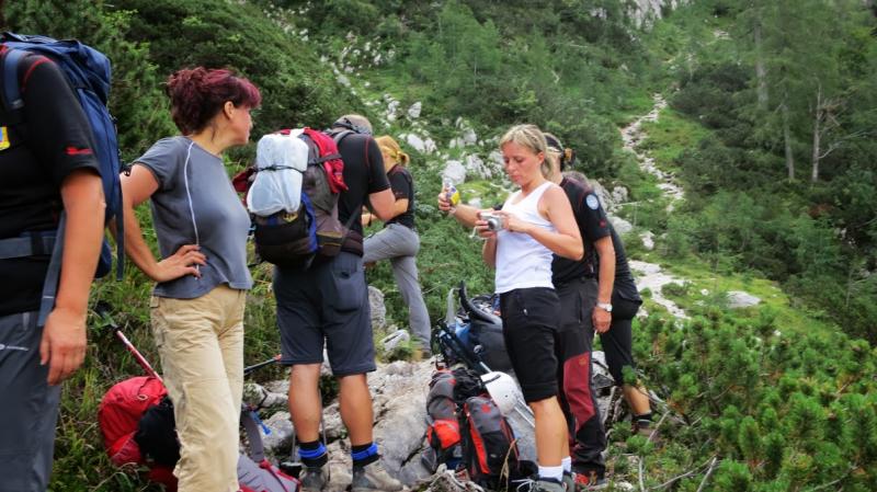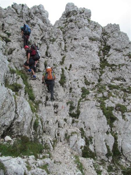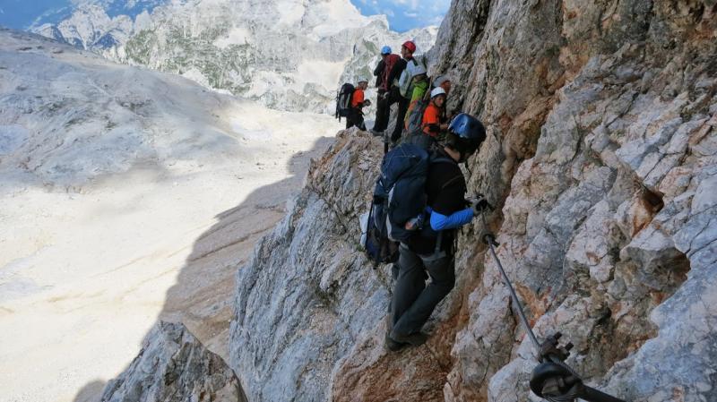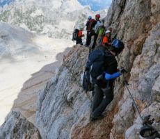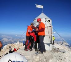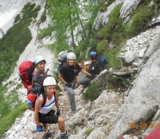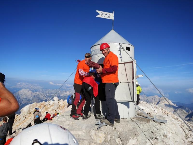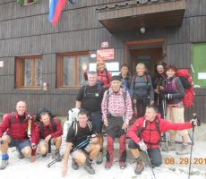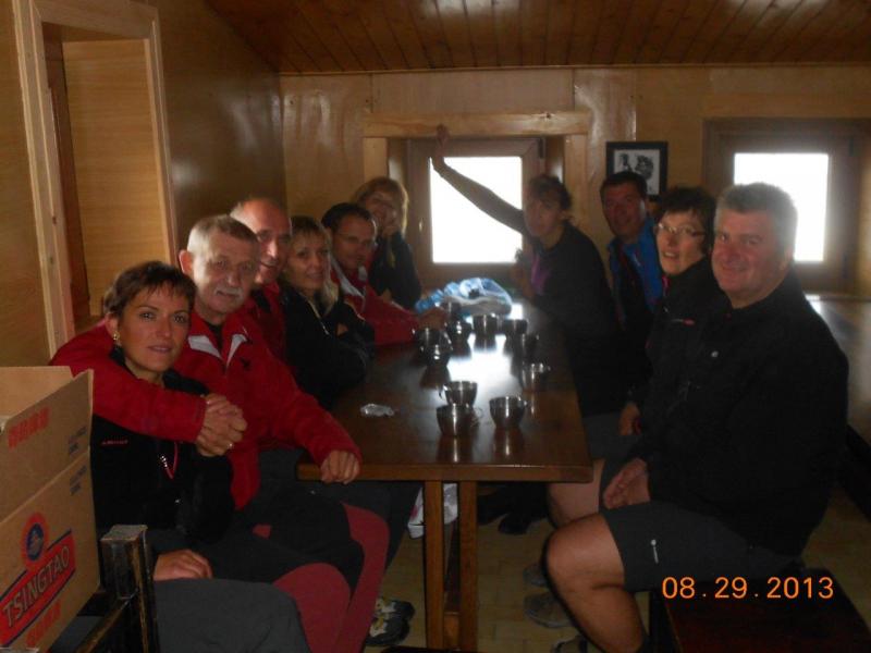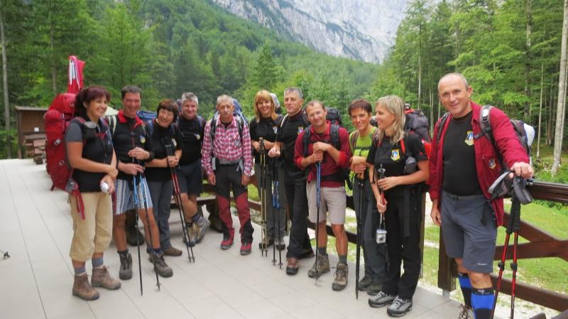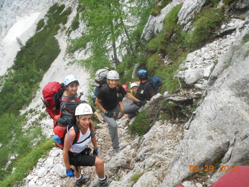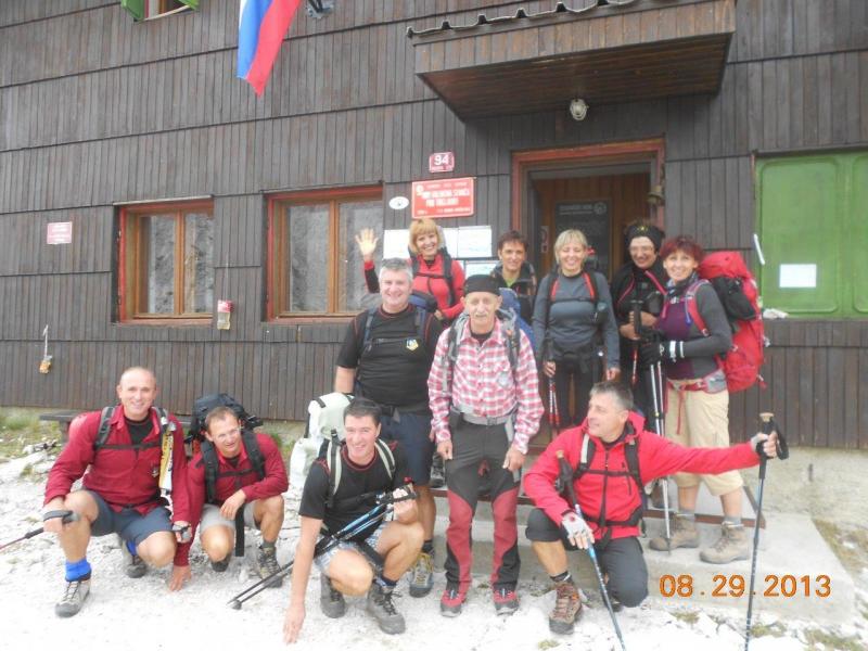 pridružita Milena in Mojca. Vesela družba z mnogo humorja se bliža Bledu kjer nas čaka še Majda in taksi ki nas pelje do Aljaževega doma v vratih. Malica slikanje in priprava na vzpon. Vsi dobro razpoloženi tudi naša Martina, ki jo čaka prvi vzpon na Triglav in seveda tam primeren krst. Podamo se na pot po težki Tominškovi. Od Aljaževega doma smo krenili ob 8.30 Leon naprej nato Martina, ki je tako željna krsta na Triglavu za njo Ivan in ostali Aleš zadnji. Kmalu prečkamo gozdno mejo in prve zajle. Martina malo spreminja barvo vendar pogumno gre v plezanje saj nam je zelo zaupala. V rekordnem času do Staničeve koče. Čestitke, čaj jota, klobase, pivo in odpočiti gremo čez Rž do Kredarice, kjer se namestimo v sobo. Večerja analiza dotedanje poti vici humor kramljanje v veseli družbi. Ob 10h se odpravimo k zasluženemu počitku,vendar si imamo še veliko za povedati. Nobene utrujenosti ni čutiti. Zjutraj vstajanje ob 6h zajtrk in ob 7.15 odhod na Triglav. Martina je polna adrenalina pripravljena na vzpon vesela ker smo ji dejali da je najhujše za njo. Ogleduje si planince kje hodijo in ne more verjeti, da bo tu šla tudi ona. Gremo v istem vrstnem redu. Martina v primežu Ivana korak za korakom kot, da je bila že velikokrat na Triglavu. Vrh Triglava ura je 9.15 čestitke poljubi novi Slovenki, krst. Z Ivanom sva bila nesramna, ker sva jo tepla oba. Vreme je čudovito tako, da smo na vrhu več kot eno uro. Sledi spust do Doliča. Martina koraka kot izkušena planinka z malo pomoči. Koča na Doliču, polenta z golažem, klobase pivo počitek malo spanja, Martina ne more spati, očitno zelo srečna. Še vreme nam je naklonjeno je oblačno ko se