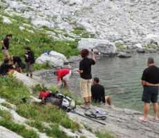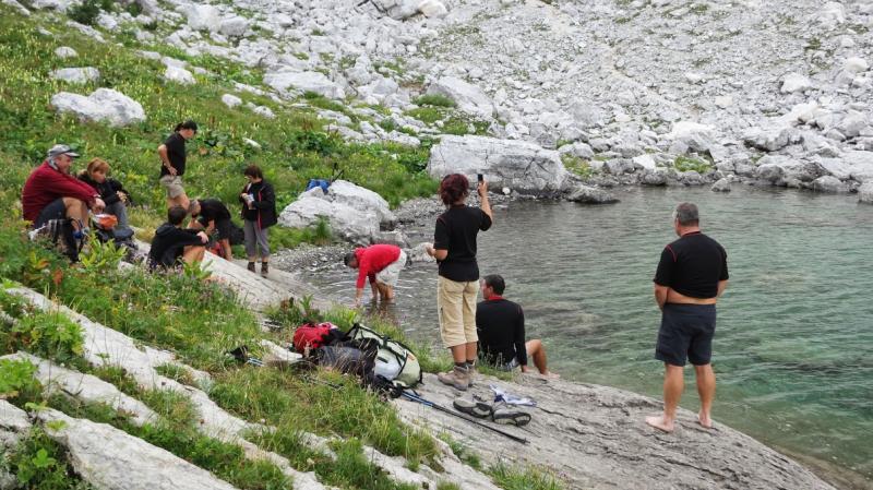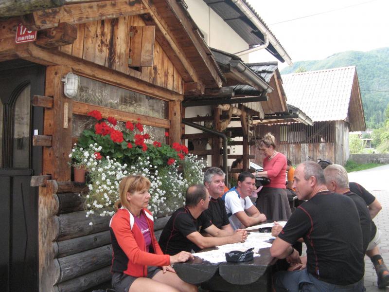 podamo čez Hribarce. V rekordnem času smo vrh Hribaric. Počitek in nadaljevanje poti proti Sedmerim jezerom. Pri ledvičnem jezeru počitek z namakanjem nog. Prihod v koči nas pričaka Darjo, ki je prišel čez Komarčo in se nam pridruži. Počitek namestitev v sobo, večerja in nato zabava s harmoniko in plesom, nihče ni utrujen pleše cela koča. Božo sicer naš harmonikar veselo prepeva z godcem. Škoda veselja je konec ob 10h. V sobi spet analiza dne vici humor, vstajanje ob 6.15 zajtrk in odhod ob 7.30 proti koči Planina pri jezeru Vmes se ustavimo na planšariji na Dednem polju, jemo kislo mleko, jaz neroda je polijem, ker sem je hotel dati Martini. Zopet pot pod noge in že smo na Planini pri jezeru, počitek in odhod proti Vogarju. Bolj se bližamo cilju bolj smo tiho. Še zadnja postaja Vogar, počitek pivo in odhod proti Stari fužini, kjer nam je Majda dobila odlično gostilno z odlično domačo gurmansko hrano. Žganci, ječmenka, klobase, mešano meso na žaru štruklji, kislo mleko in seveda zlata kapljica. Nato sledi še kopanje v Bohinjskem jezeru za najhrabrejše: Ivan, Božo, Aleš, Peter, Damjan. Avtobus proti Bohinjski Bistrici, vlak in že se peljemo proti Mostu na Soči, kjer nas zapustita Milena in Mojca. Prihod v Novo Gorico ob 18.50. Sedemo na vrt železniške postaje analiza uspešnega izleta. Zanimivo nihče ni utrujen vsi bi bili še tukaj vendar po dobri uri gremo domov dobre volje in nepozabljene družbe. Ivan, Aleš, Martina, Klara,Mojca, Milena, Majda, Božo, Peter, Damjan hvala vam za nepozabne tri dni v prekrasni