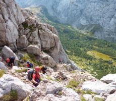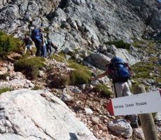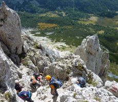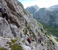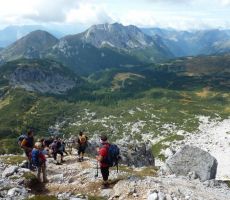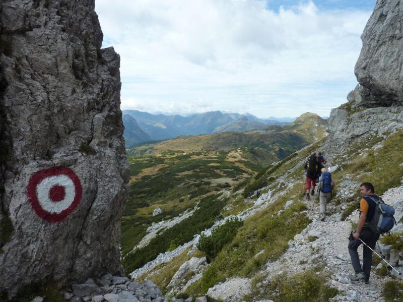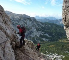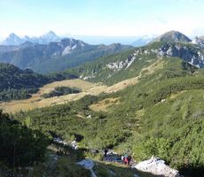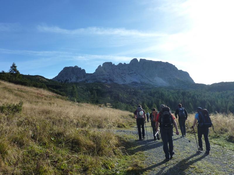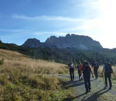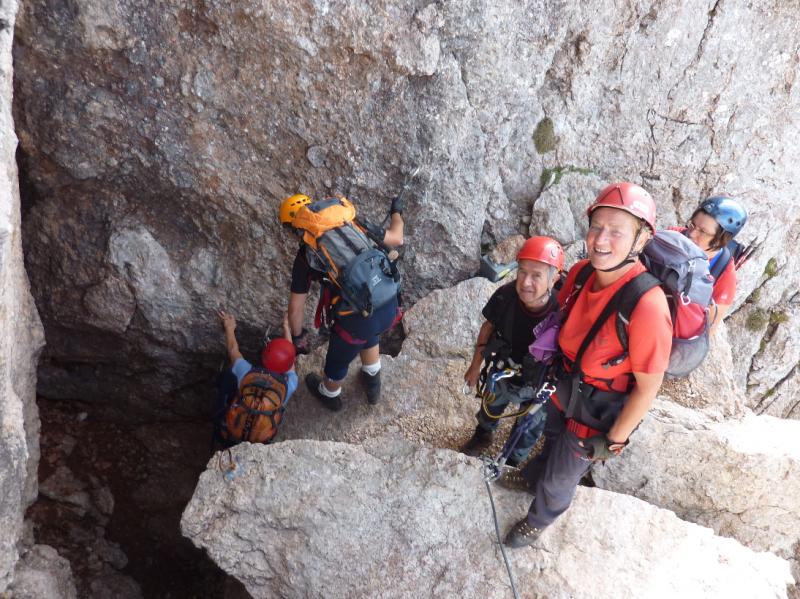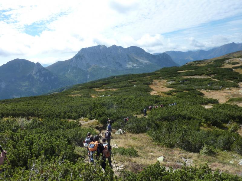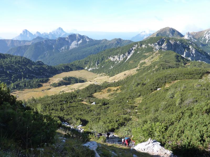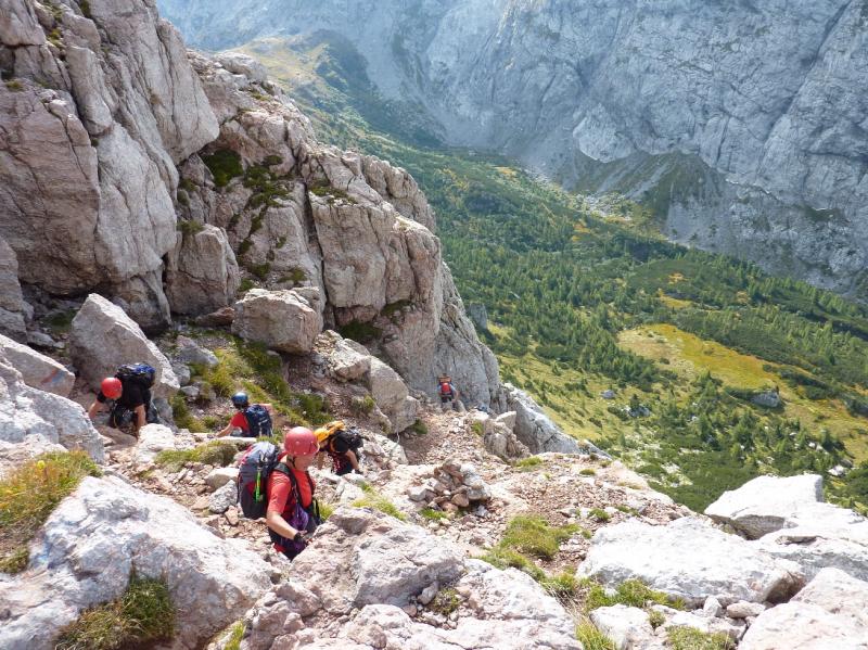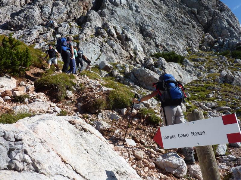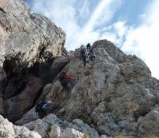 Čez Cason di Lanza - Slovenci so prelazu nadeli ime Lonice - je bila letos speljana etapa dirke Giro di Italia, s ciljem v Trbižu. Novogoriški in ljubljanski planinci pa smo si ga vzeli za izhodišče planinskih tur na okoliške vrhove. Pred leti smo se povzpeli na bližnjo Zermulo in na sosednji Zuc della Guardia. Letos pa si je vodnica Ingrid izbrala 2279 m visoki vrh Veliki Koritnik, italijansko Creta di Aip, nemško Trogkofel, na meji med Italijo in Avstrijo. Ob 8. uri zjutraj smo se iz Pontebbe skupaj pripeljali na prelaz Lonice, od koder se nas je vseh 19 odpravilo proti našemu vrhu. Na vrh smo se povzpeli po kratki zavarovani poti Via ferrata Crete Rosse. Sestopili pa smo v smeri običajnega pristopa na goro, ki pa je brez varoval in zato celo zahtevnejši od naše ferate. Nadaljevali smo po državni meji, ob kateri je tudi po 100 letih še veliko vidnih ostankov bunkerjev in strelskih jarkov iz I. svetovne vojne. Med potjo smo si ogledali vhod v jamo Grotta di Attila, ki se v meandrih vije v podzemlje. Sprehod preko planin je ponujal lepe razglede na bližnja in daljnja pogorja, vse do Grossglocknerja in drugih tritisočakov. Narava že začenja dobivati jesenske barve, tako da se bo treba vrniti prihodnji mesec, ko bodo zažareli macesni.