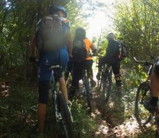 Sledil je vzpon na Ulovko (801m), del poti smo prevozili po planinski poti, ki je bila mestoma strma,in kamnita (večina nas je šla peš) vztrajni so jo pa prevozili. Sledil je 2. spust do stolpa na Planini (735m) in nato preko Lintverna (tehnično zahteven spust -večina peš) v Star maln.