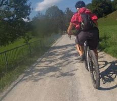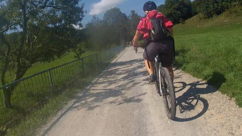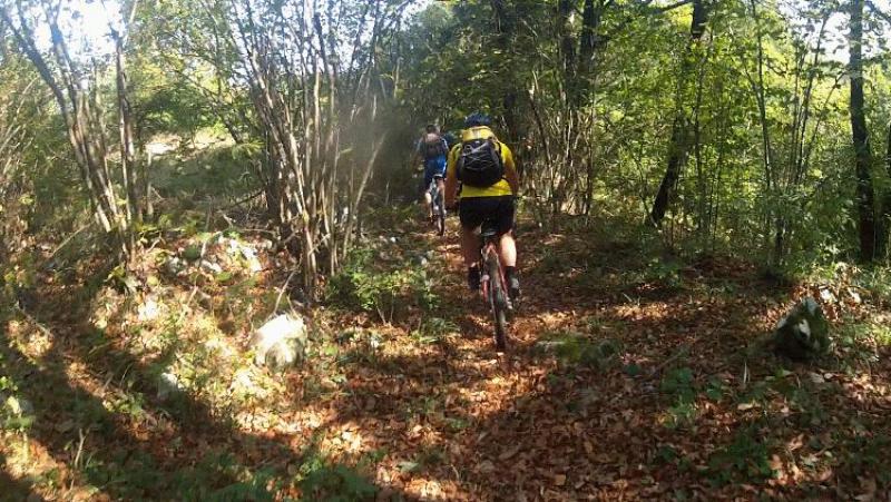 Nato je sledil uživaški 1. spust po zanimivi potki, ki ni tehnično zahteven, užitke smo si lahko povečali z večjo hitrostjo (pot so uredili gorski kolesarji in pohodnikov na njej ni bilo).