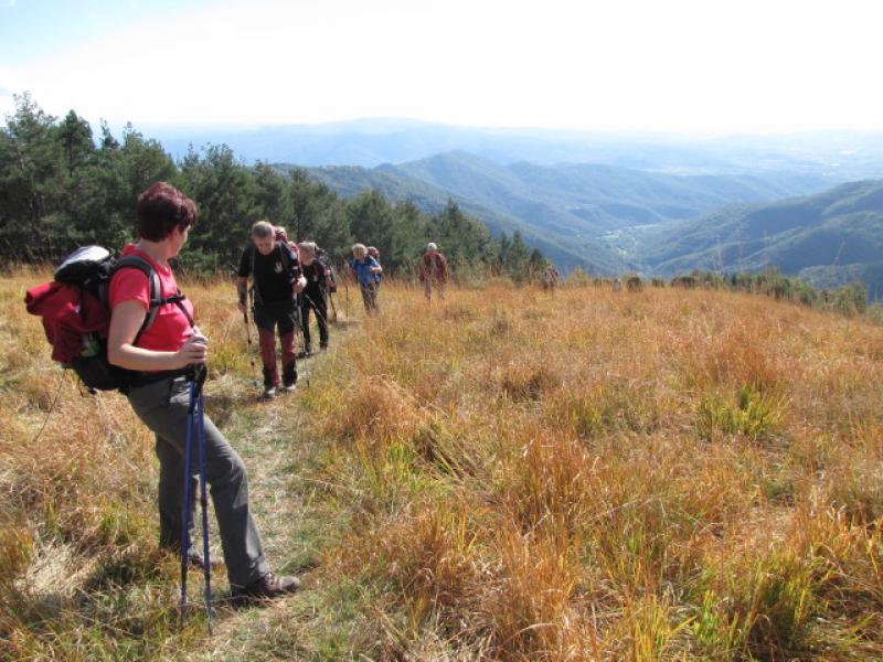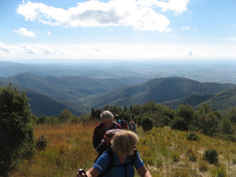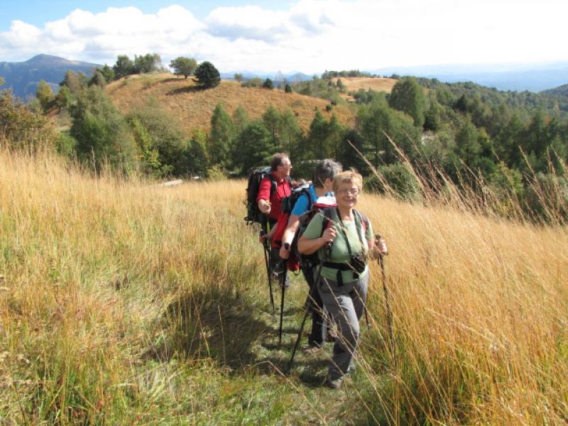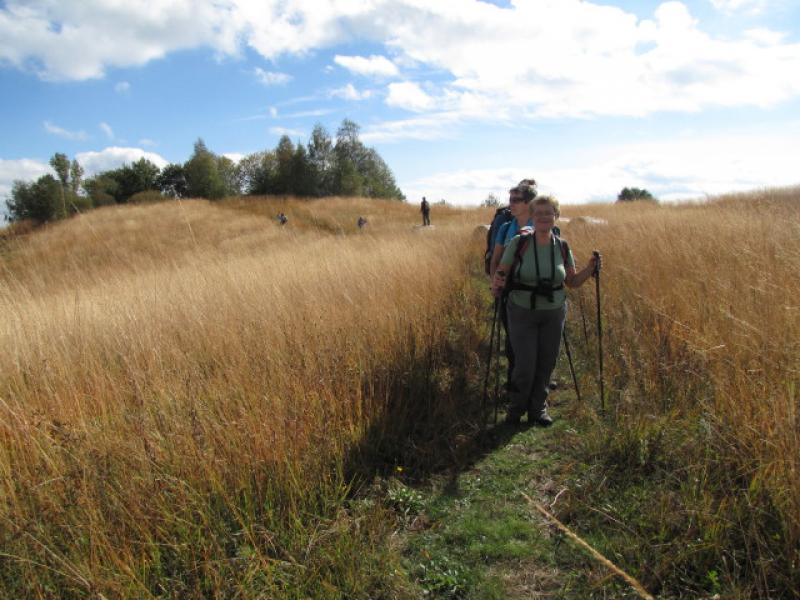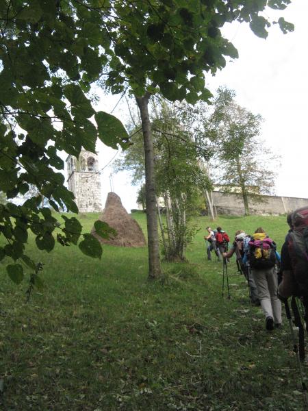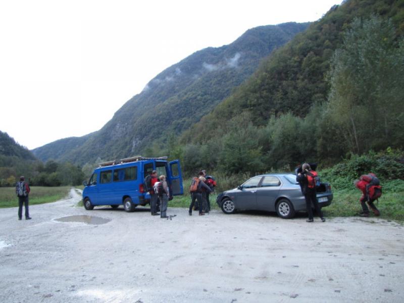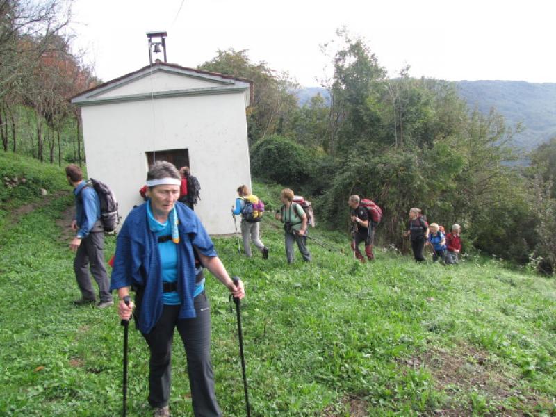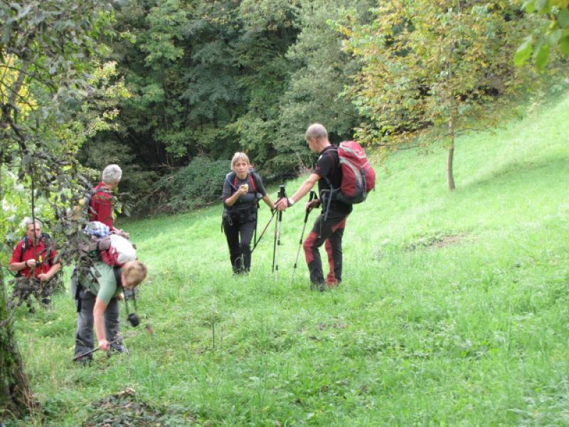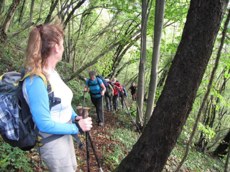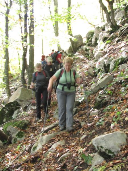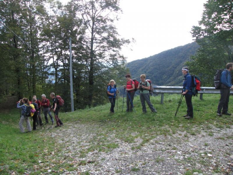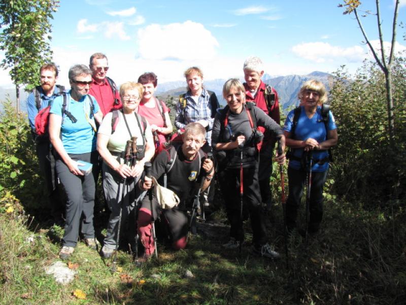 Že v laskem letu smo spoznali vasice nad desnim bregom Nadiže, letos pa smo se mimo teh vasic odpravili na navišji vrh Ivanac ali St. Joanez 1167m. Pot nas je vodila mimo Arbeča (Erbezzo), Gorenje vasi (Goregnavas) do S. Štandreža (S. Andrea). Tu smo se obrnili čez Kladje do vasi Kau (Calla) in se na njenem obrobju napotili proti vrhu Uoršič. Ob poti smo se srečali z ostanki vojaških bunkerjev, ki naj bi bili po nekatrih podatkih narejeni med I. svetovno vojno, po drugih podatlih pa izhajajo iz poznejših časov. Vsi objekti so dobro ohranjeni, le visoke trave in grmovje preprečujejo, da bi bili bolje vidni. Na Uoršiču se je naša steza med visokimi porumenelimi travami priključila na makadamsko cesto. Žal zaradi visokih trav in nepokošene steze nismo mogli narediti manjšega ovinka, da bi prečili še greben Klabuka, na katerem stoji tudi še dobro ohranjen bunker. Tako pa smo po cesti odkorakali proti vznožju Ivanaca (M. Joanez). Že od Uoršiča dalje smo uživali v prelepih razgledih na naše gore obložene s prvim jesenskim snegom. Izza grebena Polovnika se nam je celo bohotil sam Triglav, na južni strani pa se je na obzorju svetil Tržaški zaliv. Na zahodu so se bohotili vthovi Karnijskih Alp, greben Kobariškega (Breginjskega) Stola in naprej Muzcev ter Breškega Jalovca pa je nekoliko zakrival pogled na Kaninski pogorje. Še jutranje megle so se dvignile nad vrhove, da so bili le ti bolj prepoznavni. Sam vrh Ivanaca je precej zaraščen, zato smo se raje dlje časa zadržali na planoti pred vrhom in si privoščili počitek in malico. Tudi našega pomočnika Ivana smo si privoščili in ga dražili, kako se počuti "Iwanc" na Ivanacu in da toliko žensk verjetno še ni hodilo po njemu. Za kratek čas smo se ustavili še na samem vrhu, v dolino pa nas je pot vodila proti severu pod vrhom Trinčeža do vasi Čarni varh (Montefosca), ker so si nekatri še privoščili pravo Italijansko kavico. V dolino smo se vračali po starem kolovozu, ki je bil včasih glavna povezava z dolino, do izhodišča v Štupci (Stupizza). S te poti je bila včasih tudi povezovalna pot na Pradolino, ki je bila glavna povezava med Breginjskim kotom in Čedadom. Kljub utrujenim nogam smo zajeli dan s polno žlico in v svoje domove odnesli vsaj delček Benečije in njenih vasic, ki so nekaj posebnega. Žal pa se v teh vasicah vedno redkeje sliši pristno Benečansko narečje, saj je v preteklosti oblast zatirala Slovensko besedo, veliko damačinov pa je tudi zapustilo te kraje in se odselilo v dolino.