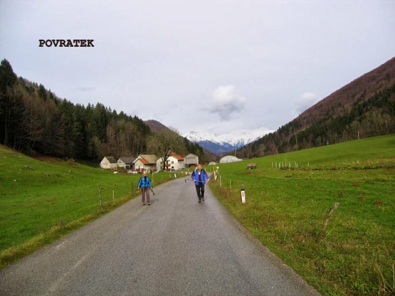 Po čepovanski dolini smo se pripeljali do odcepa za Vrše. Od tu smo pot nadaljevali po zelenih travnikih in pašnikih mimo Vrš, kjer so ostanki pratizanskega okrevališča s spomenikom do vrh Skopice. Od tu smo se razdelili na dve skupinei. Ena se je vrnila po isti poti, druga pa se je spustila na Čepovanska vrata.