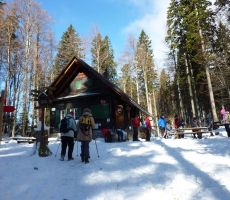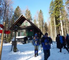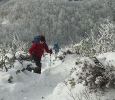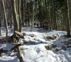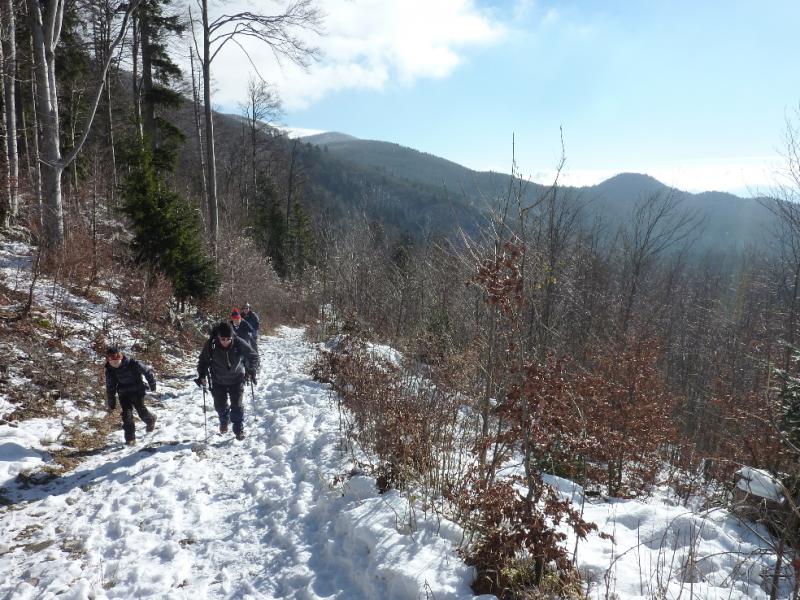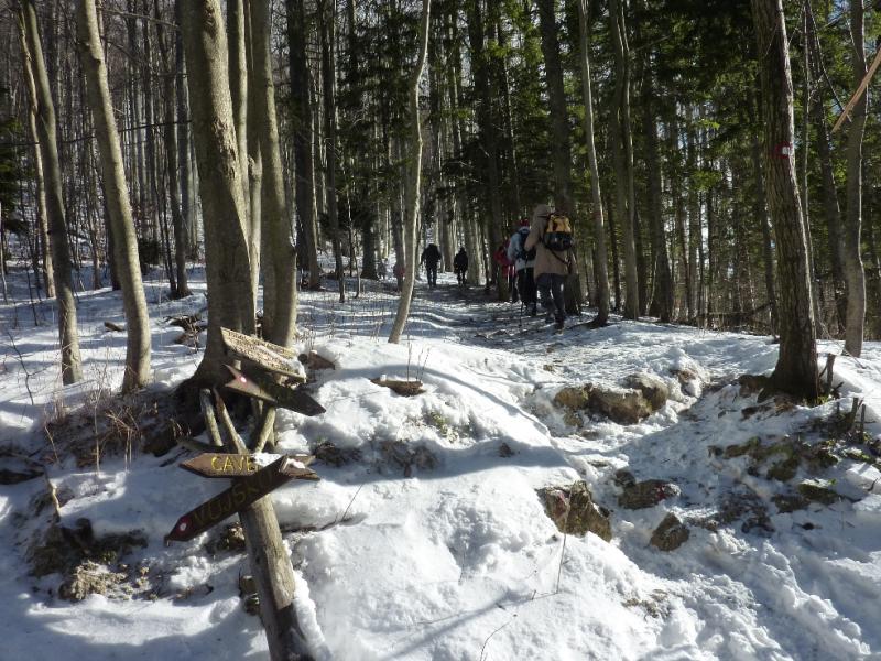 Iz Ljubljane nas je odpeljal do polovice napolnjen avtobus v Logatec in nato čez Črni vrh in Col do Predmeje. Tam se nam je pridružilo skoraj še enkrat toliko članic in članov iz naše Planinske skupine Nova Gorica. Avtobus smo kar malo neradi zapustili, saj je zunaj brila močna burja. Ko pa smo se odpravili proti Iztokovi koči na Golakih, nam je drevje nudilo zavetje in hoja po svežem snegu je bila prijetna. Del poti smo šli skupaj, potem pa se je manjša skupina odpravila na najdaljši pohod čez vse tri Golake, na Veliki Golak, Srednji Golak in nato še na navišji vrh - Mali Golak (1495 m).