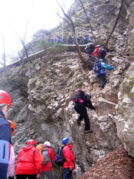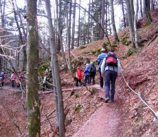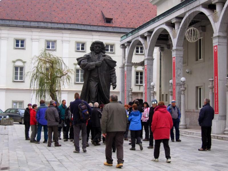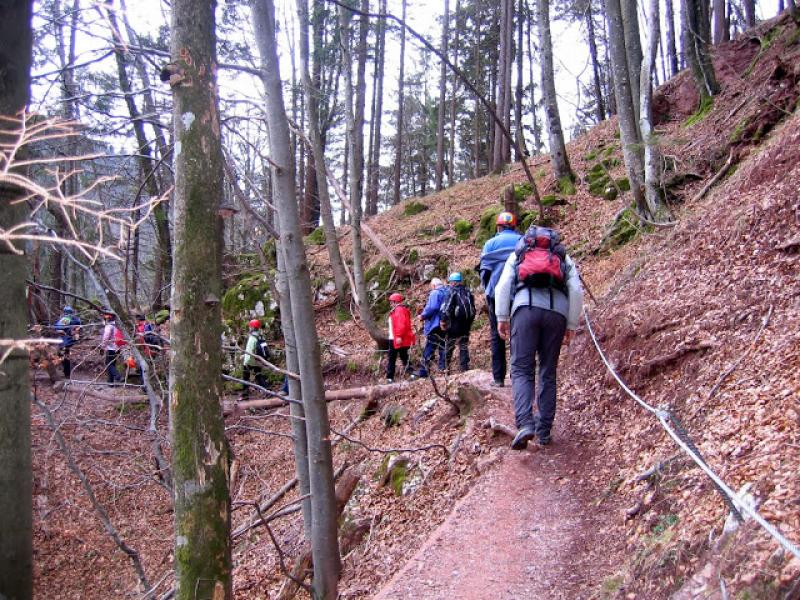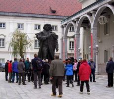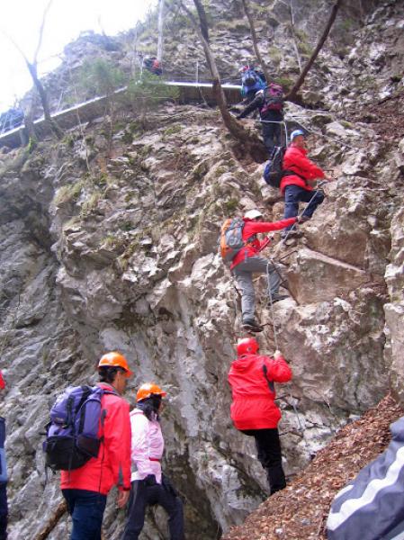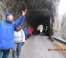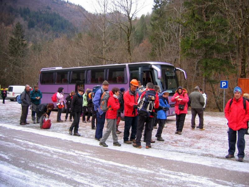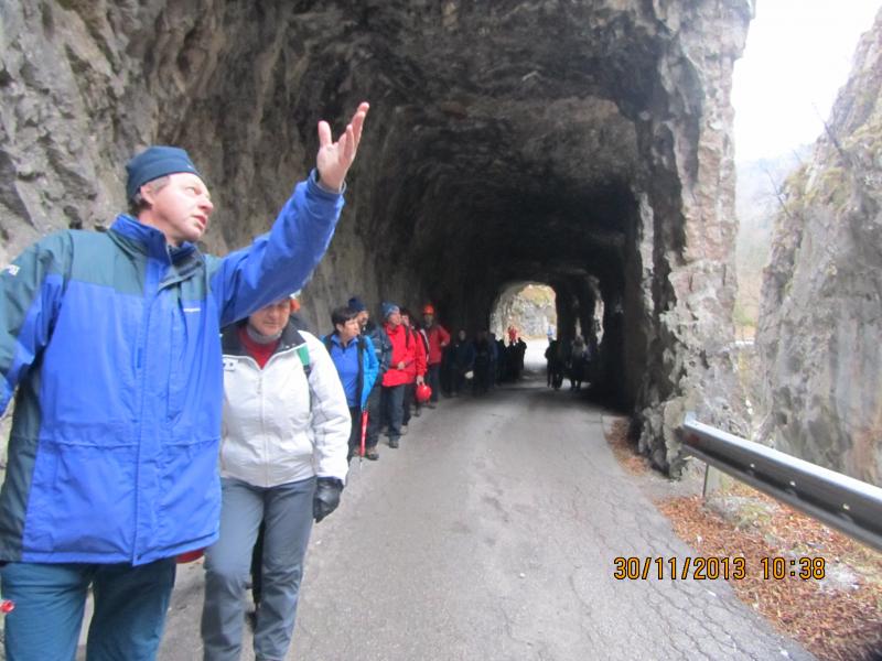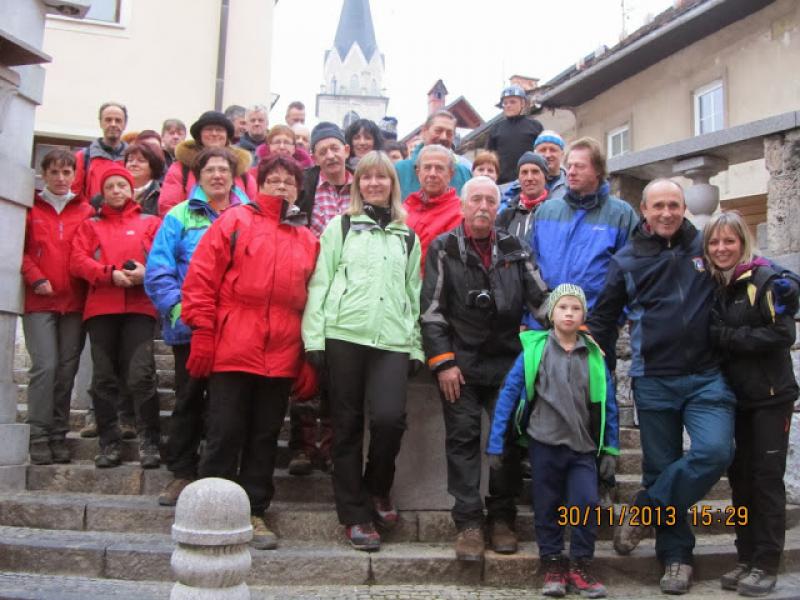 Na zadnji izlet v tem letu, v soboto, 30.11.2013 sta nas Ivan Trampuž in njegov kranjski pomočnik Polde Balažič s pomočjo še dveh kolegov Uroša Škrjanca in Matjaža – njegovega imena si žal nisem uspela zapomniti - popeljala v Dovžanovo sotesko, ki je od leta 1988 zavarovana kot naravni spomenik, in v kranjske rove. Marsikdo se je za izlet odločil, ker še ni bil niti v Dovžanovi soteski niti še nikoli ni slišal za kranjske rove. Jaz pa se bom potrudila ohraniti spomin na ta zanimiv izlet. Delno smo si ogledali ali se peljali skozi dve mesti: Tržič, stisnjen med Kamniško – Savinjske Alpe in Karavanke je dobesedno razpotegnjen vzdolž struge Tržiške Bistrice. Marsikdo ga je doslej poznal le po "šuštarski nedelji" in še to bolj s televizije. Nekoč so vodno moč reke izkoriščali za mline, žage in druge manjše industrijske obrate; nato je mestece postalo znano po čevljarski industriji, danes pa tržiška industrija zaposluje le še maloštevilne ljudi. Naravne lepote pa nudijo možnost za razvoj turizma, je pa dolina tudi izhodišče za planinske ture. Ali ste vedeli, da je slavni maršal Radetzky, ki se je boril proti Napoleonu, imel ženo prav iz Tržiča? Nanj se bomo ponovno spomnili ob novoletnem koncertu!