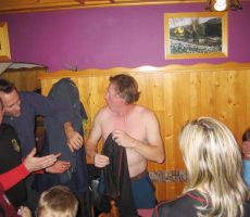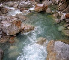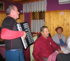 Nato smo se nekateri vrnili po isti poti mimo osamljenih domačij, večina pa po bolj avanturi- stični poti na desni strani struge. Fotografirali smo se ob slapovih imenovanih Slapišče, čeprav so bili na vsakih nekaj metrov prizori vredni fotografiranja. Na parkirnem prostoru, kjer nas je čakal ob avtobusu mladi voznik iz Vipave, se je iz nahrbtnikov v trenutku pojavilo cel kup dobrot. Tudi harmonika (Ivan) in dve kitari nista manjkali (Miloš, Peršolja).