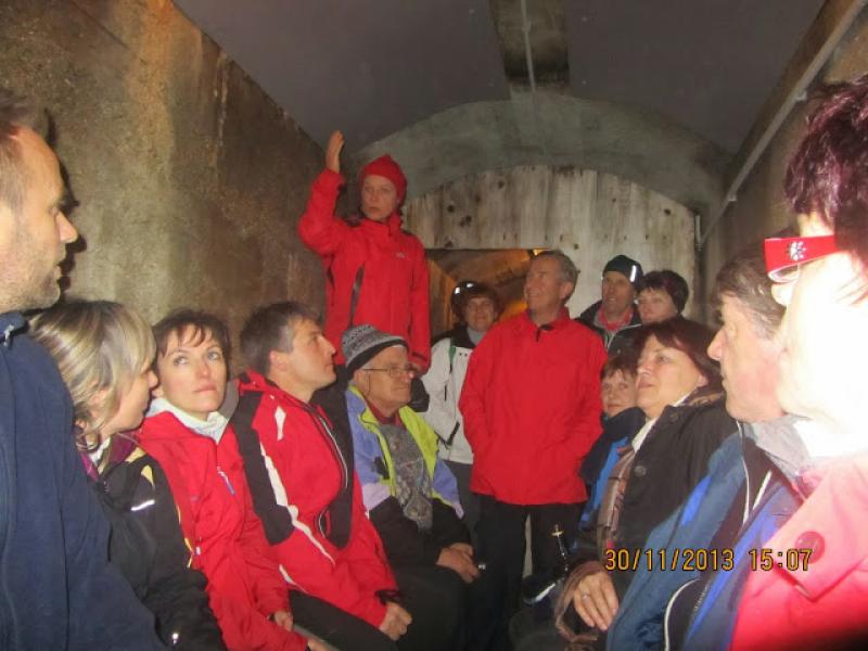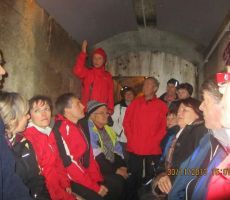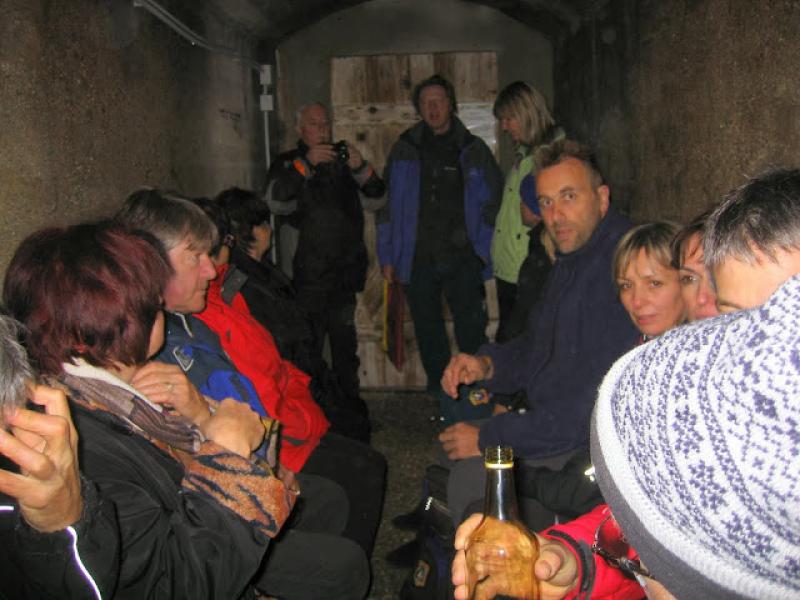 Vanje smo vstopili z zahoda, nad Savo, ven pa smo prišli na vzhodu v kanjonu Kokre. Dolgi so po mojem mnenju kakšen km do dva, vendar je poleg glavnega rova še več stranskih. Letos so v njih priredili martinovanje, ki se ga je udeležilo več tisoč ljudi. Zanimiv je tudi vodnjak ob izhodu iz rovov iz leta 1470, katerega dno je niže od nivoja reke Kokre. Napraviti so ga dali oglejski patriarhi s cerkvenim denarjem. Iz njega so povlekli razne arheološke oz. zgodovinske najdbe, ki jih je Polde nekaj celo prinesel pokazat (kovanci, gumbi, školjke…). Vodnjak se nahaja tik pod visokim betonskim mostom, ki se pne nad Kokro in manjšim lesenim sprehajalnim, zunanji del pa se nahaja pri Prešernovem gledališču. Fantje so zelo prepričljivo opisovali izkopavanja izpred štirih let. V rovih pa smo doživeli tudi simulacijo bombardiranja sedeč na lesenih vlažnih klopeh. Ker je bilo skoro kot zares, smo si podajali steklenico z okrepčilom. Zelo zanimiv in lahek izlet, bolj ekskurzijo, smo zaključili v gostilni Kot, ki se nahaja na lepem Maistrovem trgu zaprtem za promet in se ne prepozno vračali domov. Ivan in Anica sta se ponovno izkazala kot odlična organizatorja in Ivanu je kot ponavadi uspelo pretentati tudi vreme.