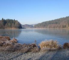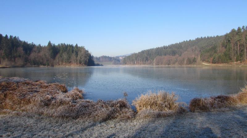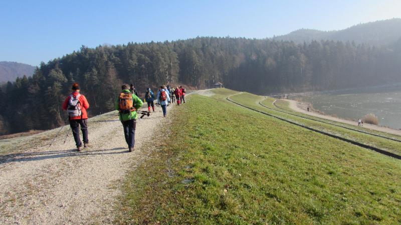 Potem smo se spustili proti Gradiškemu jezeru. To je umetno zajezeno jezero, ki so ga zgradili kot mokri zadrževalnik na potoku Drtijščica, ki varuje avtocesto Ljubljana-Maribor pred hudournimi vodami. Okoli jezera je speljana urejena makadamska pot v dolžini 4,2 km, ki je idealno sprehajališče. Tod se vije tudi del Rokovnjaške poti, ki poteka čez vrhove okoliških hribov in je dolga 60 km. Poleg sprehajalcev ob jezeru uživajo tudi ribiči, na jugozahodnem koncu jezera je drstišče rib, vodne površine pa so si prisvojili tudi labodi in race. Jugovzhodno od jezera se nahajajo ostanki ruševin gradu Rožek. Ob jezeru, na prostoru za piknike, smo si tudi mi privoščili malico in malo počitka, hkrati pa smo uživali ob pogledih na to prekrasno jezero, ki je bilo na nekaterih delih celo zamrznjeno. Nato smo tudi mi prehodili del poti okoli jezera in občudovali odseve sonca v vodi in od zamrznjenega ločja. Počasi smo zaključili našo krožno pot in se z avtobusom odpeljali v Stahovico, v gostišče Planinski orel na praznovanje. Kmalu se nam je pridružila tudi druga skupina, ki je prehodila del Koželjeve poti.