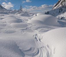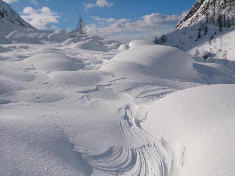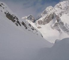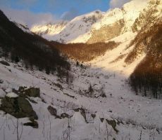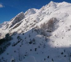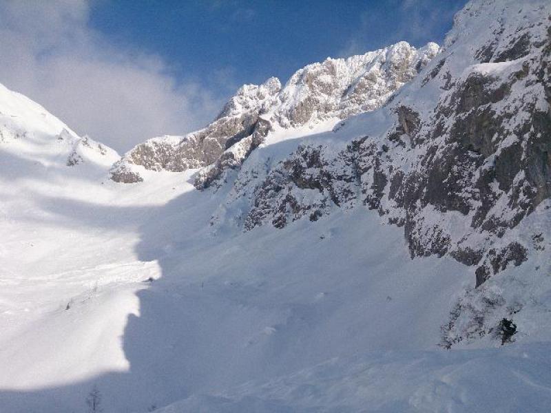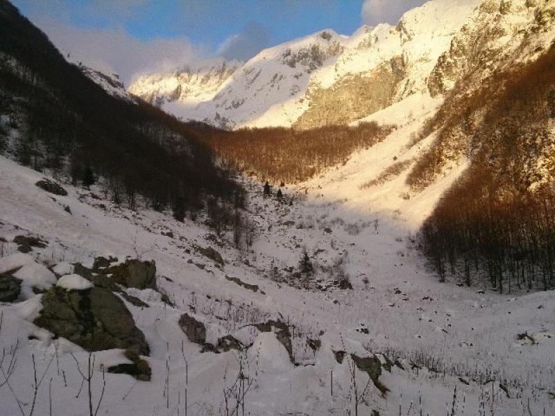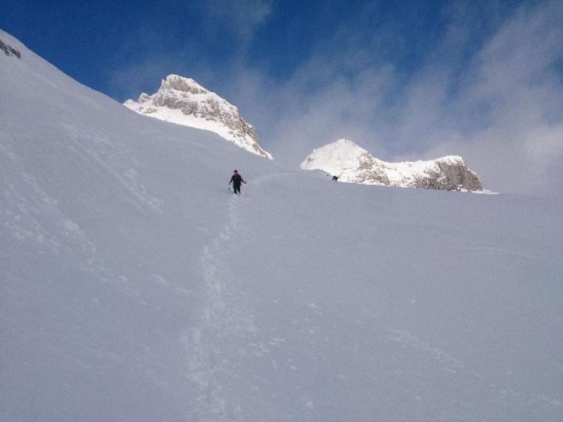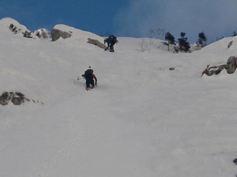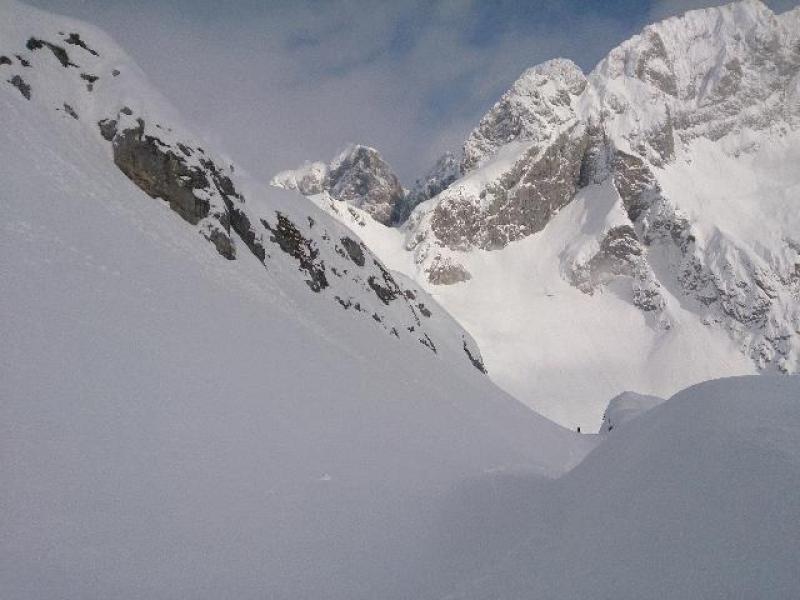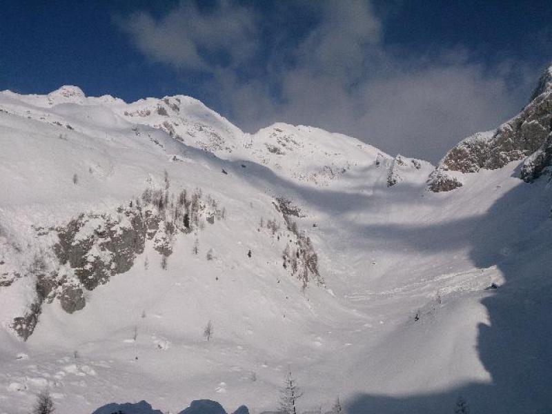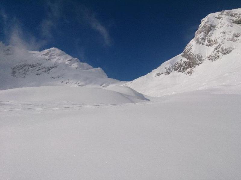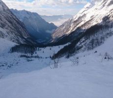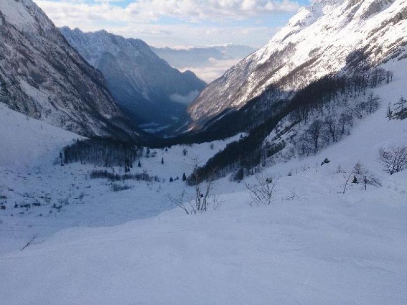 Vožnja iz Solkana mimo Bovca v Bavšico (713 m). Že v Solkanu smo se dogovorili, glede na včerajšnje pogoje (plaz pobral nekaj smučarjev), da gremo proti bovški. V Kobaridu postanek in pregled situacije v gorah in odločitev, da gremo do Bovca in se tam odločim. Žalostni pogled na Kanin je povzročil idejo da gremo v Bavšico. Nobeden udeleženec še ni hodil v tem okolju pozimi, nekdo niti poleti. V dolini Bavšice je bil občutek da se sneg začne že na 1000m in delovalo je vse zimsko.