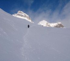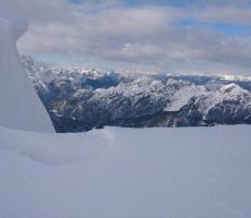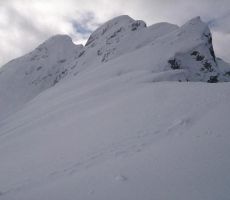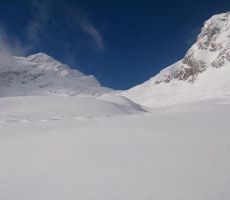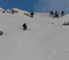 Že takoj nad kočo smo si nadeli krplje, na težjih mestih pa smo uporabljali dereze in cepin. Tako smo se prebili do Prevale (1560m) - naš drugi cilj. Tu se odločimo za glavni cilj vzpon na Konjsko škrbino. Po dolini Lanževice in tektonskega jarka, ki je sestavni del Naravnega spomenik Morež – južna pobočja smo se povzpeli na KONJSKO ŠKRBINO 2063m.