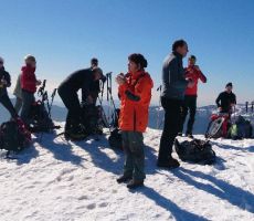 Vožnja iz Solkana mimo Kobarida do Drežniških Raven (770 m). Že v Solkanu smo se dogovorili da gremo do korita v Drežniških Ravnah, kjer bomo poiskali ustrezen parkirni prostor. Pot smo nadaljevali po markirani poti za Krasji vrh, nekajkrat smo presekali makadamsko cesto in tako prišli do lovske koče. Pri lovski koči smo iz kopnega prešli v sneg, kjer smo imeli tudi krajšo pavzo, da smo se ustrezno opremili. Pot smo nadaljevali proti južnim obronkom in na najlepši točki naredili daljšo pavzo za prigrizek in ogled lepot, ki so nas obdajale. Poseben pogled je bil na Kobarid iz »ptičje« perspektive. Pot smo nadaljevali po zmrznjenem snežišču do sedla, kjer so se odpri novi pogledi na Krasji vrh in na kopni greben za lažji pristop. Zopet je bilo treba narediti pavzico, da smo se odžejali in prigriznili dobrotam, ki so jih posamezniki nudili. Čakal nas je še naskok po grebenu do vrh, slabih 300 višinskih metrov. Na vrhu KRASJEGA VRHA pa samo še čudovito, prečudovite in sploh ah in oh.