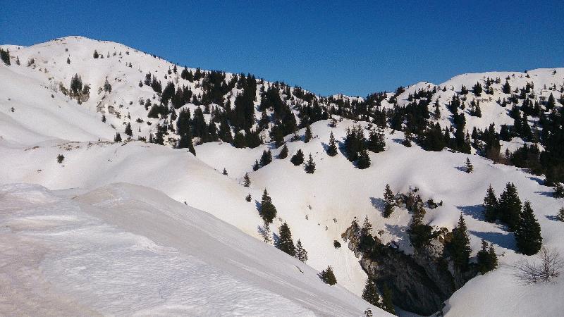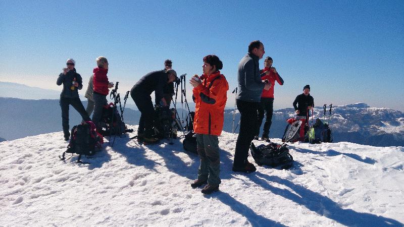 Vreme je bilo sončno, okoli poldneva še pretoplo, tako da se je sneg odjužil in si lahko po normalki sestopal brez derez. Medtem ko so bila severna pobočja pomrzjena in je bila potrebna uporaba derez in cepina.
