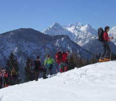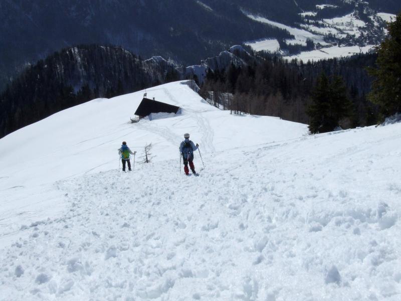 Z osebnimi avti smo se zapeljali do Dovjega, naprej je bila cesta prevozna bolj slabo, pa še to le do bližnje kmetije, kjer smo parkirali. Nadaljevali smo peš, sprva kar po zasneženi cesti, ob kateri smo gledali od žleda polomljeno drevje. Sneg je bil še pomrznjen, nekoliko je drselo, a smo si pomagali s pohodnimi palicami. Više gori smo si pot skrajšali po bližnjicah, vendar se je tu nam, malo težjim, sneg ponekod udiral, zato je bila hoja malo težja.