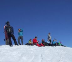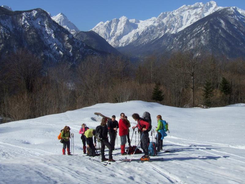 Nismo pa samo hodili, smo se tudi učili: hoje z derezami in cepinom, prečenja snežišča, uporabe cepina pri reševanju med zdrsom oziroma padcem.