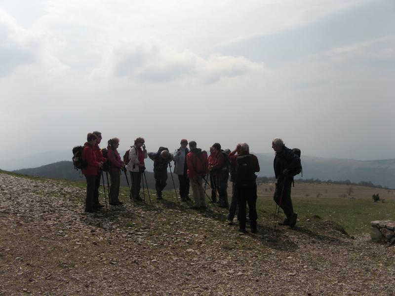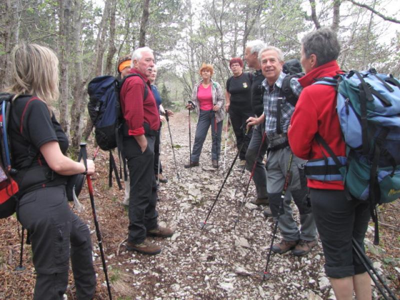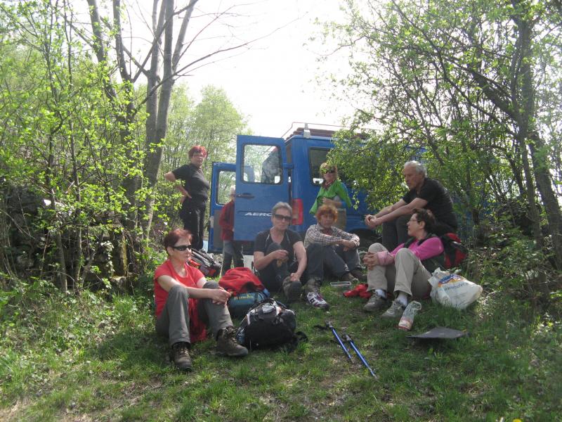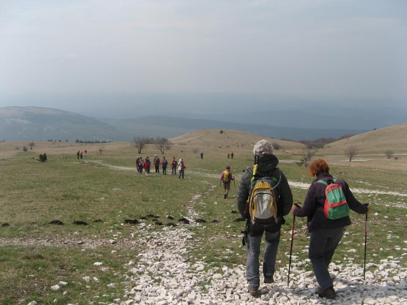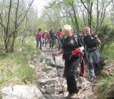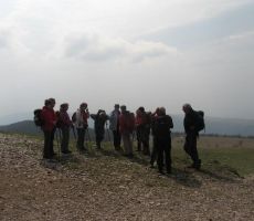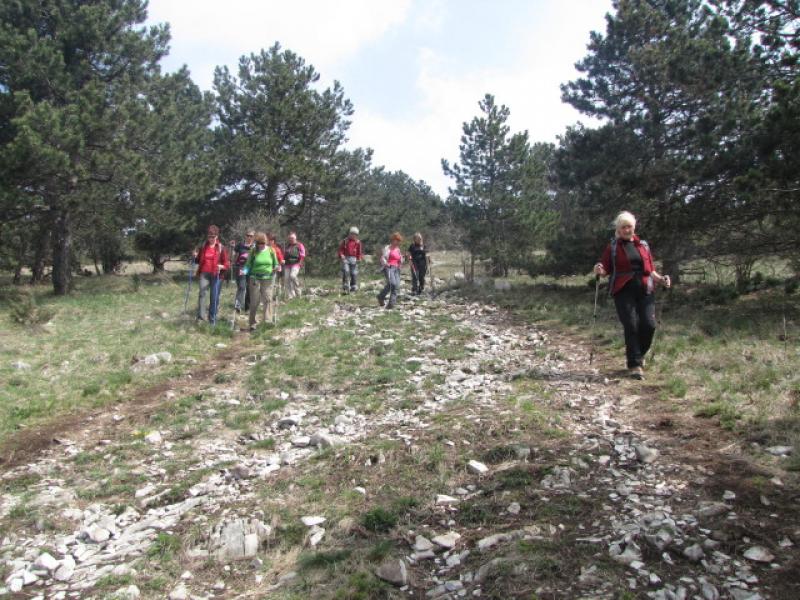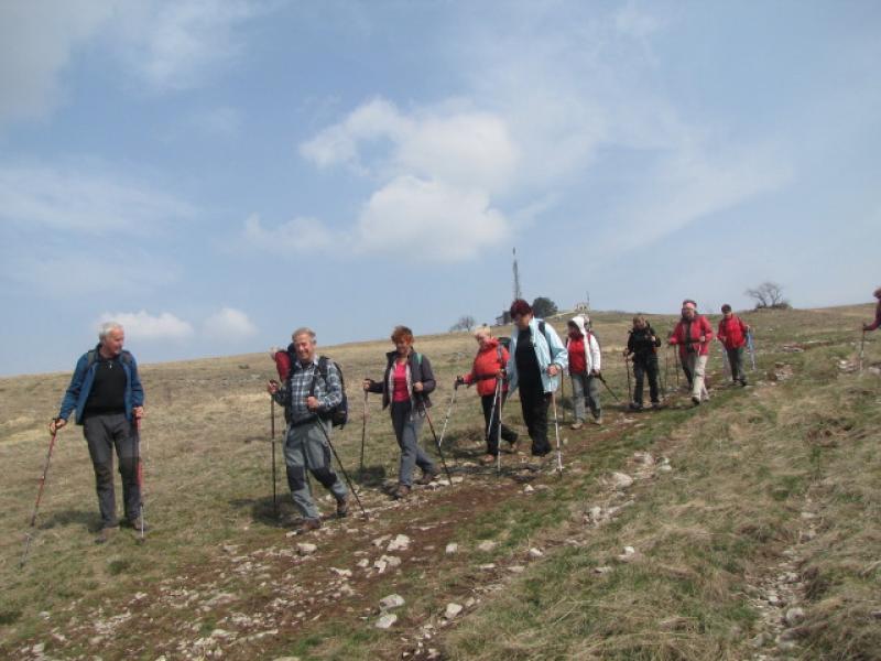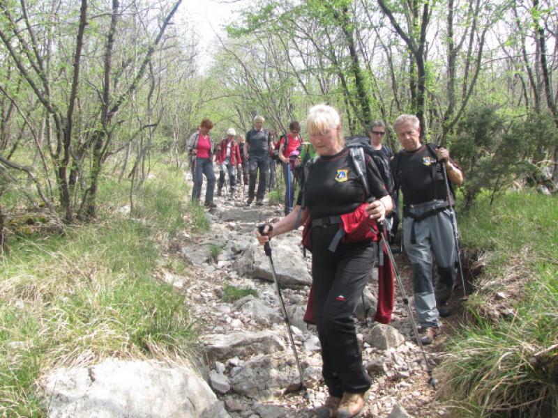 V prijetnem nedeljskem jutru smo se zbrali na zbornem mestu v Novi Gorici in se skupaj odpeljali naprej proti Kozini, kjer so se še zadnji zaspanci prebudili ob jutranji kavi. Pot smo nadaljevali do Prešnice, kjer je eno izmed izhodišč na najvišhi vrh zaledja Slovenske Istre - Slavnik. S parkirišča na koncu vasi smo odšli po dobro označeni pot, med redkim drevjem in kraškim kamenjem našemu cilju naproti. Med potjo smo skreniili še do razgledne točke, kjer smo si v mrčastemu vremenu ogledali okoliške gričke in doline, pa tudi morje se nam je medlo prikazalo. Nadaljevali smo naprej po grmičastemu podrastju in kar kmalu smo prišli na travnati greben Slavnika. Prebujali so prvi znanilci pomladi in ljubiteljem cvetja so uhajali pogledi k mračnicam in prebujajočim se kosmatincem. Kar prehitro smo prispeli do koče, ki nam je dala zavetje pred kar mrzlim vetrom. Po okrepčilu, ko smo privlekli iz nahrbtnika svoje dobrote in se z njimi podprli za varen sestop, smo se družno odpravili še na sam vrh. V tem času se je tudi vreme malo popravilo in nam ponudila vsaj malo lepše razglede, kot smo jih imeli med potjo do vrha. Za sestop v doliko smo si izbrali strmo pot v Podgorje. V veseli druščini smo kar prehitro prispeli do Podgorja, kjer smo si na prijetnem soncu ponovno privoščili krajši počitek. Do izhodišča v Prešnici nas je pot vodili mimo travnikov in pašnikov, ki so se tudi tu prebujali s prvim spomladanskim cvetjem. Kar prehitro smo prisopihali do naših prevoznih konjičkov, ki so nas polne novih doživetij popeljali proti domu.