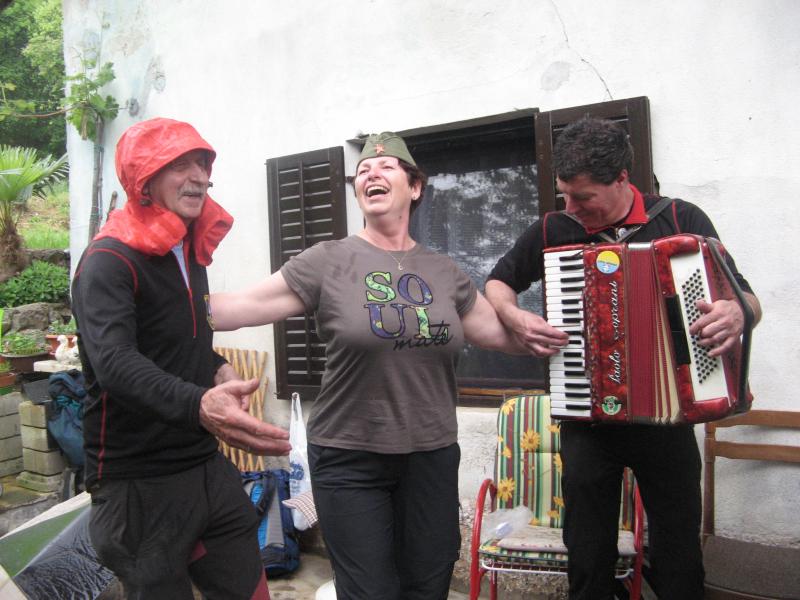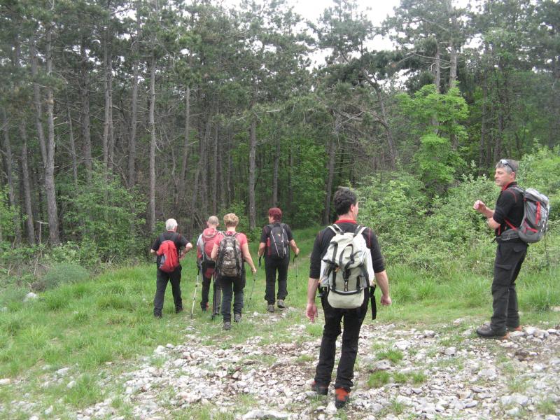 Ob 9h smo se zbrali pri cerkvi v Kostanjevici , kot običajno odhod z 10-minutno zamudo zaradi zamude najbližjih. Prisotnih nas je bilo 12, od tega trije člani PD Ljubljana. Podali smo se v smeri razpadajočih vojašnic, ki kažejo sliko naše države in gospodarske krize ter niso v ponos pohodnikom, niti krajanom. Nadaljevali smo proti Renškemu vrhu in nato po vrhovih Lešnjaka, Stolovca in Stola na Trstelj. Kljub slabi vremenski napovedi, smo vrh dosegli v suhem vremenu, le vidljivost je bila malo slabša. Sicer pa nas je spremljalo prijetno vzdušje, pogledi so nam bežali po prebujajoči se pomladi, narcisah, ljubljanskim prijateljem pa smo pomagali nabrati šopek divjih špargljev. Z vrha smo se odpravili v Stjenkovo kočo na Trstelju, kjer smo skupaj s še 7 člani, ki so nas pričakali na vrhu, poskusili dobrote – šempasko salamo in potico Kolenčevih in kraški salam od Božota. Na žalost na prireditvenem prostoru ni bilo nobenega kulturnega programa, za kar se lahko zahvalimo našim strankarskim zdraham s predsednikom države in našo vlado na čelu. Zato smo zapustili prireditveni prostor predčasno in se napotili k meni v Kostanjevico. Tam smo ob skromni zakuski in kozarcu domačega vina nadaljevali v izrednem vzdušju ob pesmi in harmoniki našega planinca Božota. Kljub dežju, smo vztrajali do noči, malo zunaj, malo v kleti. Z nočjo smo odšli vsak na svoj dom v upanju, da se bodo stvari popravile in bomo ta praznik primerno praznovali tudi v naslednjem letu.