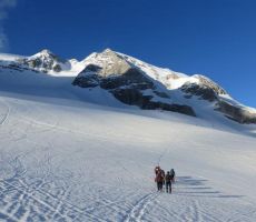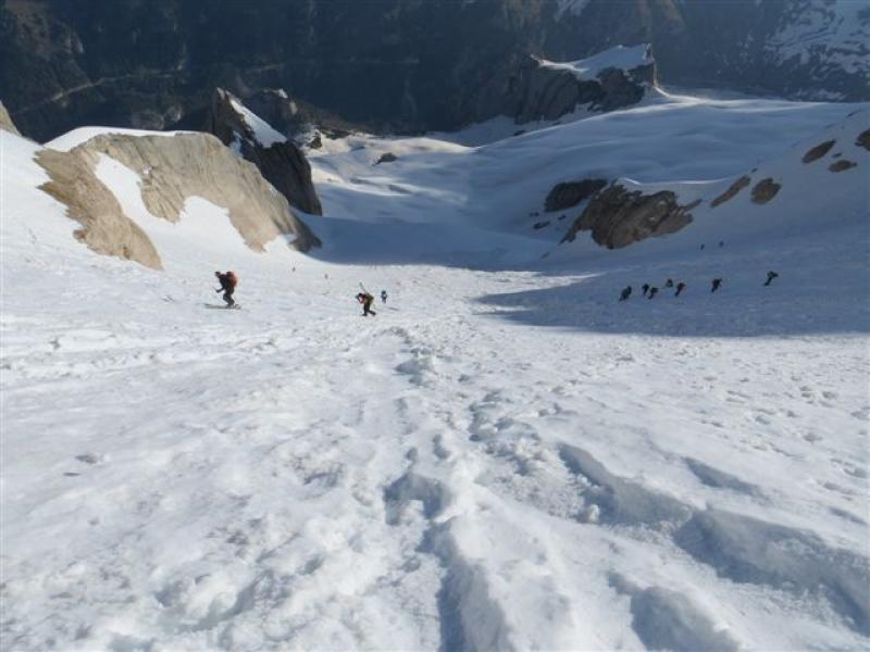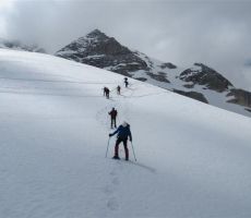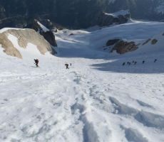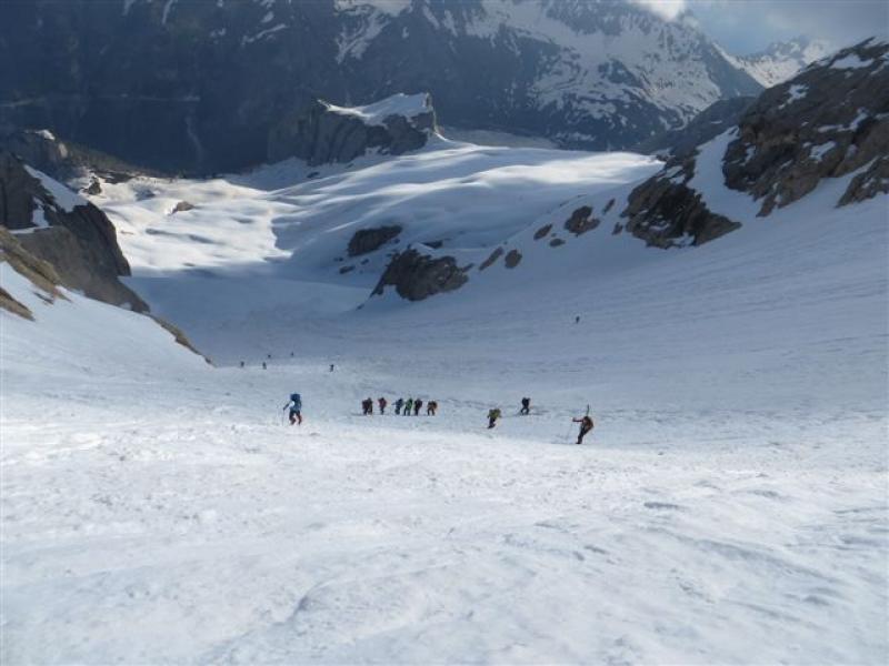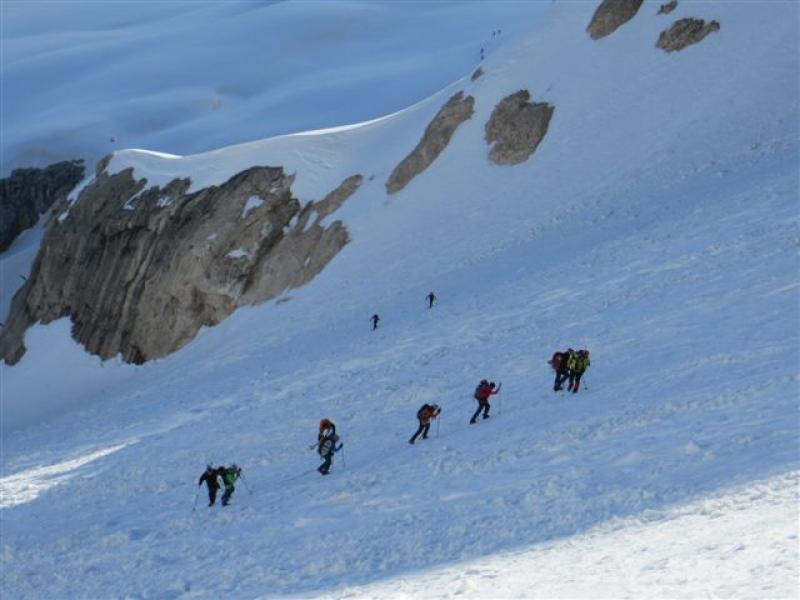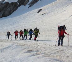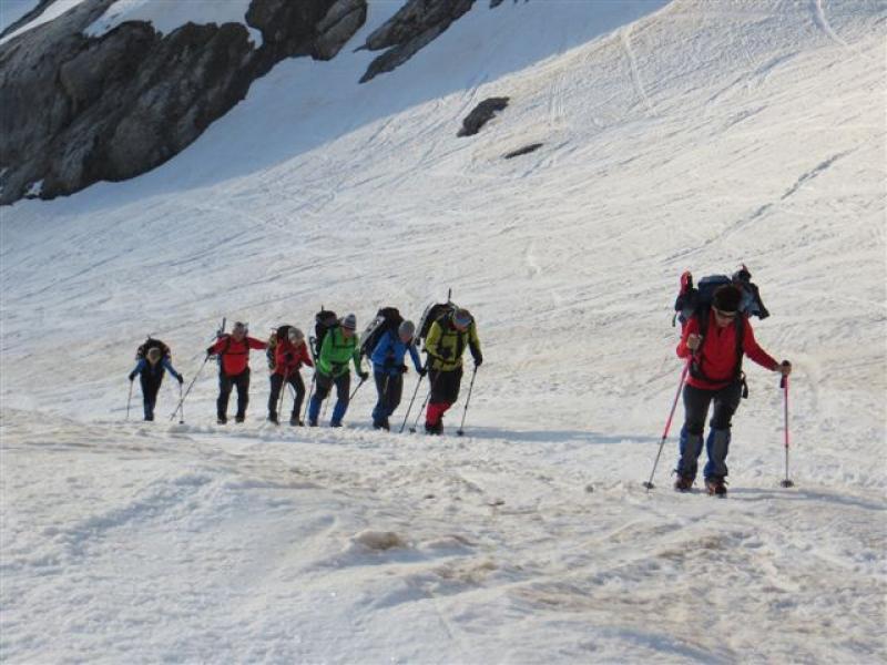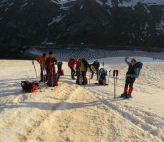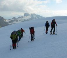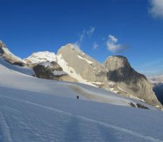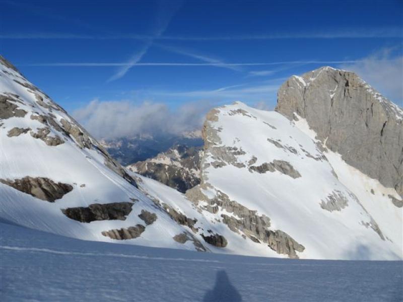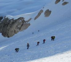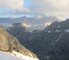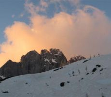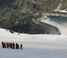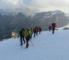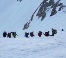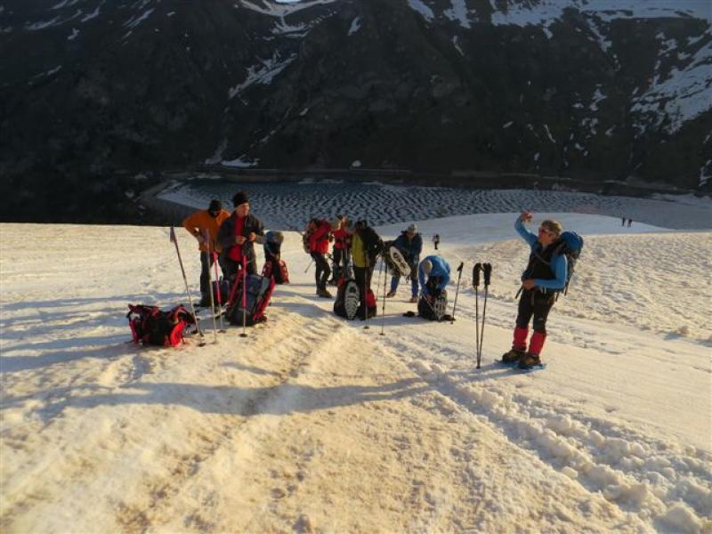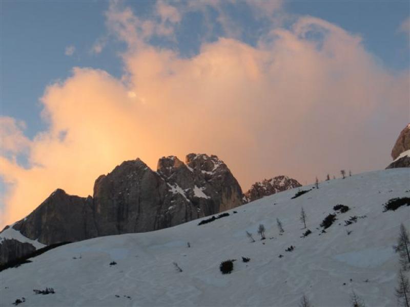 Zbrali smo se kot že vsako leto v zgodnjem jutru ob 2,00 uri na mejnem prehodu Vrtojba ob lepi polni luni, zvezdami in čisto jasnem nebu. Naložili smo vso potrebno zimsko opremo, smuči, krplje, dereze in še ostalo ter se podali na pot po AC do Portoguara in naprej do Beluna po dolini Kadore in naprej do našega izhodišča ob jezu pod panoramsko žičnico na Marmelado. Tja smo prispeli ob 5,15 uri se na hitro opremili in podali po lepo zasneženem smučišču. Razmere za hojo so bile zelo ugodne zato sem se odločil, da gremo na najvišji vrh Punta Penije 3343m. Razdelili smo se na dve skupini 6 turnih smučarje in 10 pohodnikov. Napredovali smo sprva kar hitro nato pa smo morali prečkati strmo plazišče in se je hoja nekoliko v hudi strmini upočasnila. Nismo se dali in smo nadaljevali kar korajžno saj smo že kmalu pod vrhom pridružili še eni skupini naših prijateljev turnih smučarjev. Po štirih urah vzpona smo dosegli naš vrh Marmolade kateri je bil za kratek čas ovit v meglo a se nam je tudi pokazal sonček, da smo se lahko poslikali in si na hitro pogledali nižje vrhove Dolomitov kot najbližji Picbue v daljavi Tofane in Monte Kristalo pa še druge lepe vrhove ki jih ne manjka v Dolomitih. Temperature na vrhu so bile zelo ugodne okrog ničle. Po mali malici smo se začeli kar hitro spuščati v dolino in kar v treh urah smo se spet vrnili na naše izhodišče na katerem so nam naši turni smučarji, ker so bili hitrejši pripravili pravi piknik z domačimi salami in raznimi drugimi jedmi. Skratka tudi tale izlet je bil enkraten in še ga bomo ponovili.