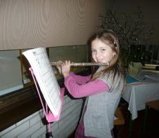 Program otvoritve razstave je z občutkom povezovala Irena Fekonja, s flavto pa je nastopila njena vnukinja Ana Davis.
