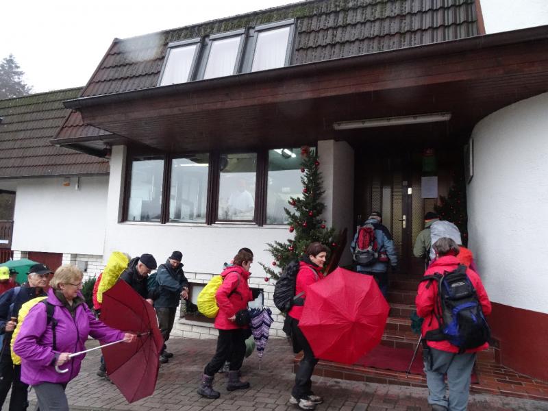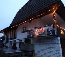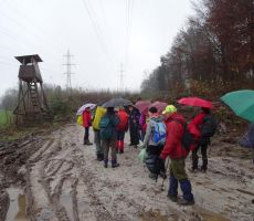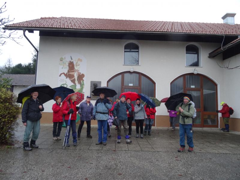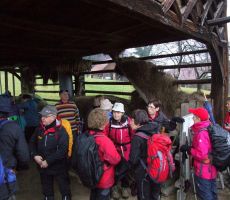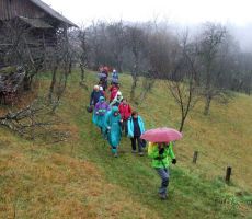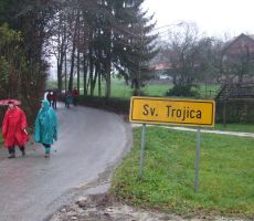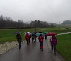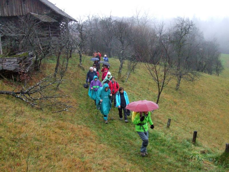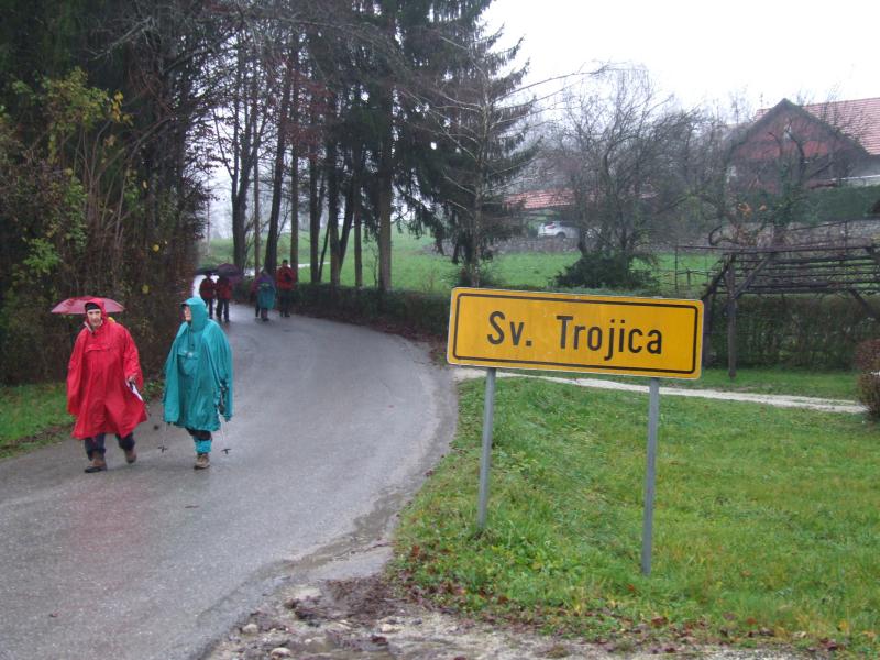 Tokrat smo se na prednovoletno srečanje odpravili v okolico Domžal. Prva skupina se je ob 7. uri odpeljala v Kokošnje (333 m), se povzpela na Sv. Trojico (530 m), sestopila v Žeje in Dobovlje do Jamarskega doma na Gorjuši. Kofetkali smo že v Domžalah, ker je bila gostilna v Kokošnjem ob tej zgodnji uri še zaprta. Pohod je potekal dokaj ležerno, saj se nam ni mudilo. Pot je bila kljub dežju prijetna, malo asfalta, sicer pa večinoma makadam, travnik ali gozdna pot. Tudi blata je bilo nekaj, a le na vzponu na Sv. Trojico, kjer smo imeli postanek za čaj ali sendvič. Drugi tak postanek je bil pod lepim kozolcem "toplarjem" v Dobovljah. V prijetnem klepetu smo prišli do gradu Krumperk in bili malo razočarani nad njegovim slabim stanjem. Sledil je le še kratek vzpon do Jamarskega doma na Gorjuši, kjer smo imeli pripravljen nadaljnji program.