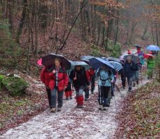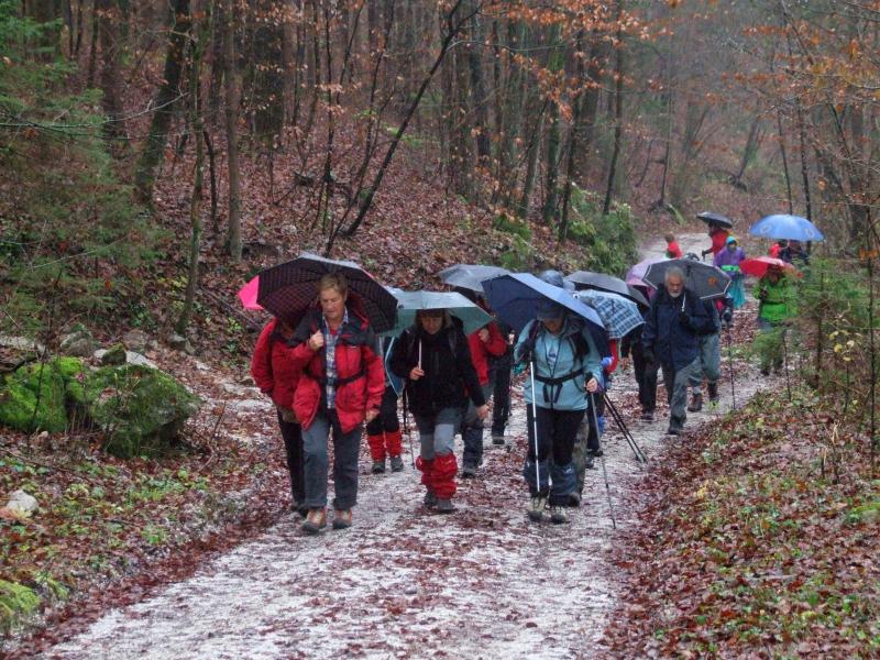 Druga skupina se je odpeljala iz Ljubljane ob 9. uri in opravila polovico krajši pohod. Vse dopoldne je deževalo, zato so bile tudi gozdne poti nekoliko blatne, vendar smo se na koncu vsi skupaj dobro razpoloženi zbrali v Jamarskem domu. Začeli smo z izrednim občnim zborom, na katerem smo sprejeli dopolnitve novih pravil društva. Nadaljevali smo z dobrim kosilom in plesom ob veselih zvokih našega tradicionalnega muzikanta. Vmes smo si ogledali še bližnjo Železno jamo.