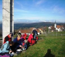 Toplo zimsko sonce je blagodejno vplivalo na zadovoljstvo udeležencev. Brez posebnega hitenja smo nadaljevali proti izviru reke Krke. Kmalu smo jo tudi dosegli in brez težav prečili strugo izvira, tokrat mirno tekoče dolenjske lepotice. Po kratkem postanku na soncu smo ubrali pot proti cilju tokratne ture. V vasi Krka nas je čakal avtobus, ki nas je odpeljal do priznane gostilne na Muljavi. Pri Obrščaku so nas pogostili z zajetno kmečko pojedino in domačo sladico. Še kako se nam je prileglo....