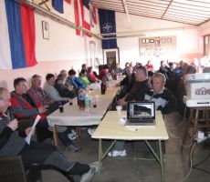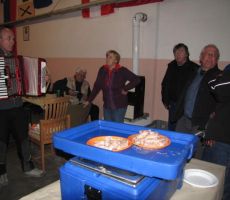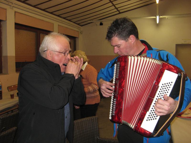 Po uradnem delu pa je sledilo še pozno popoldansko kosilo in prijetno druženje. Za veselo razpoloženje so poskrbeli naši člani: Božo in Trampuž s svojo harmoniko, Cej je prijetne zvoke izvabljal z orglicami, Marija Valetič pa je s svojim prečudovitim glasom pritegnila še ostale, da so ji pomagali peti. Naš predsednik pa ni pozabil, da smo imeli občni zbor na dan žena, tako smo bile vse žene in dekleta obdarovane z žametno vrtnico.